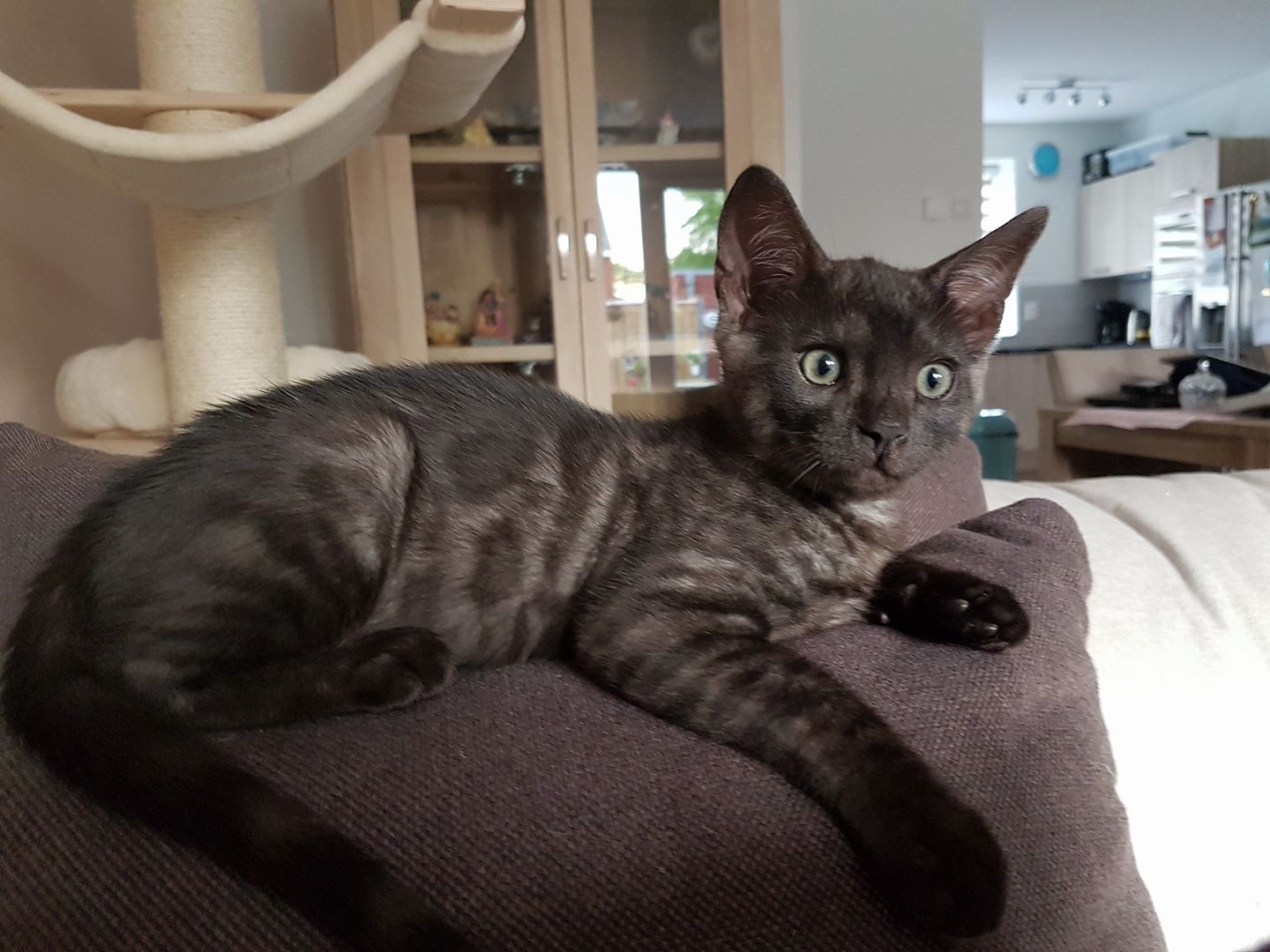 De zilversmoke is genetisch gezien een melanistic bengaal met het inhibidor gen. Dit is het gen wat verantwoordelijk is voor de zilver kleur.