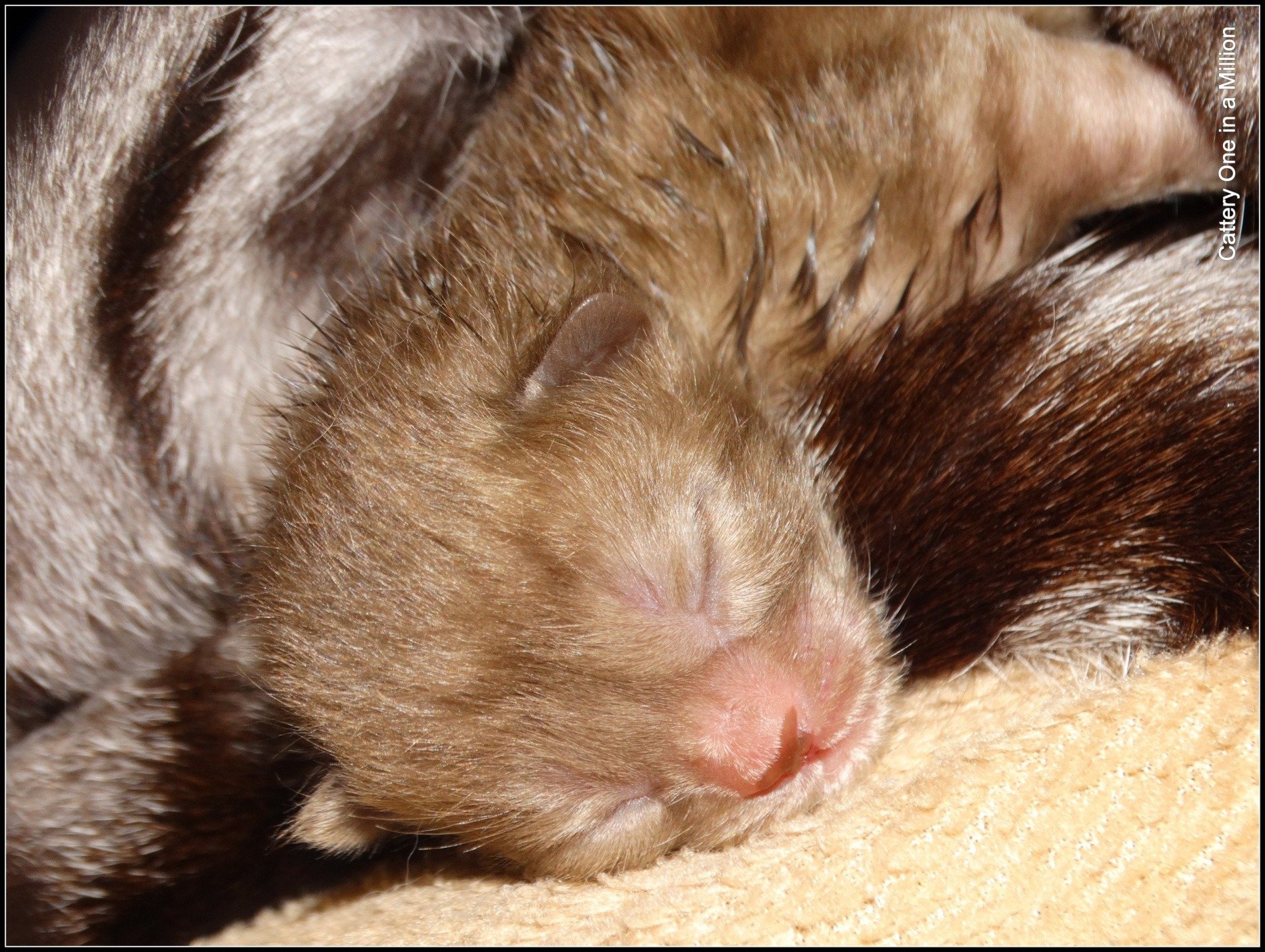 - Een normale verdeling van het pigment en kleur. Deze kat is geen melanistic, smoke of solid. Er kan met geen enkele combinatie een melanistic, smoke of solid verwacht worden.