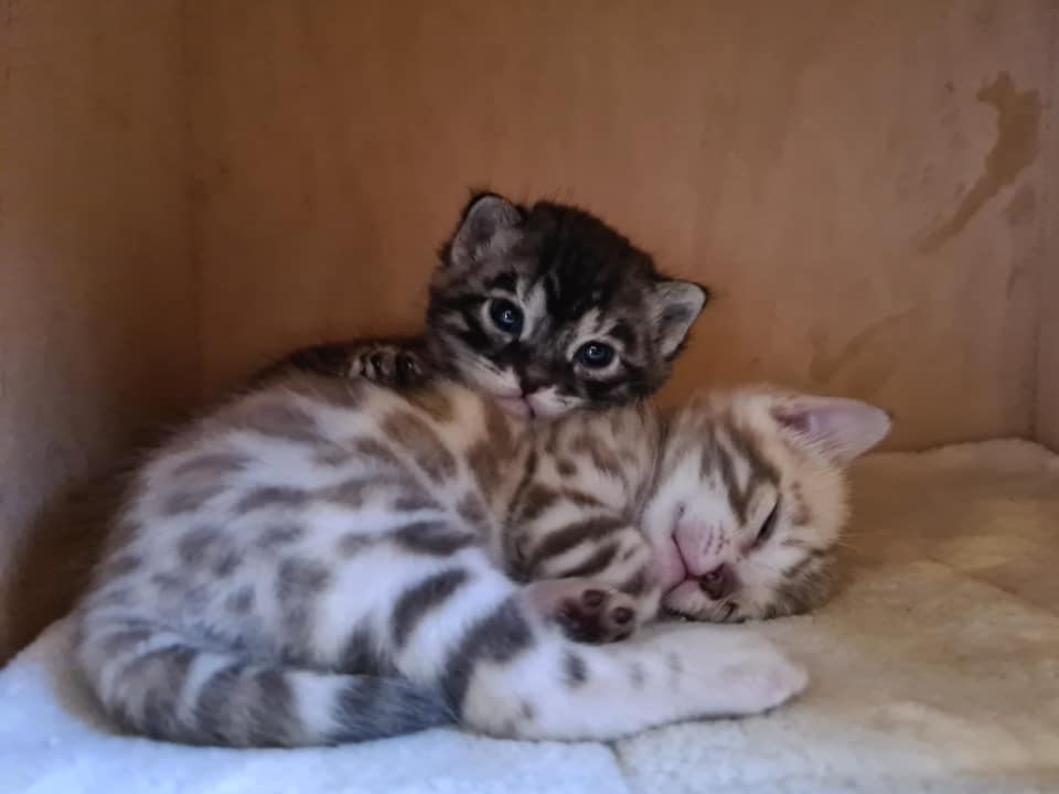 Melissa from cattery Melsbengals had taken him in for me because we were away from home for a day. Things weren't going well for her at all and a visit was made to the weekend vet. When taking x-rays it was noted that he was suspected of having a Persistent right aortic arch. He would have to have an MRI for this and an operation would be possible when he was a little older (at least 12 weeks). With this congenital defect there is a band around the esophagus that pinches it. In addition, a bulge develops in the esophagus where food accumulates. This band can be surgically removed. After a recovery of 4 to 6 weeks the esophagus recovers completely or partially. (it has to be tightened again) after which the cat has a good life again. After help from our own vets a plan was made. Milo was so lively, sweet and combative that despite the intensive care that awaited us in the coming weeks we still went for it. Besides, the surgery alone would cost a lot. But hey... just putting a kitten to sleep is not something that would be in my book if there are still options. (AND... the kitten still looks happy, eats etc.)