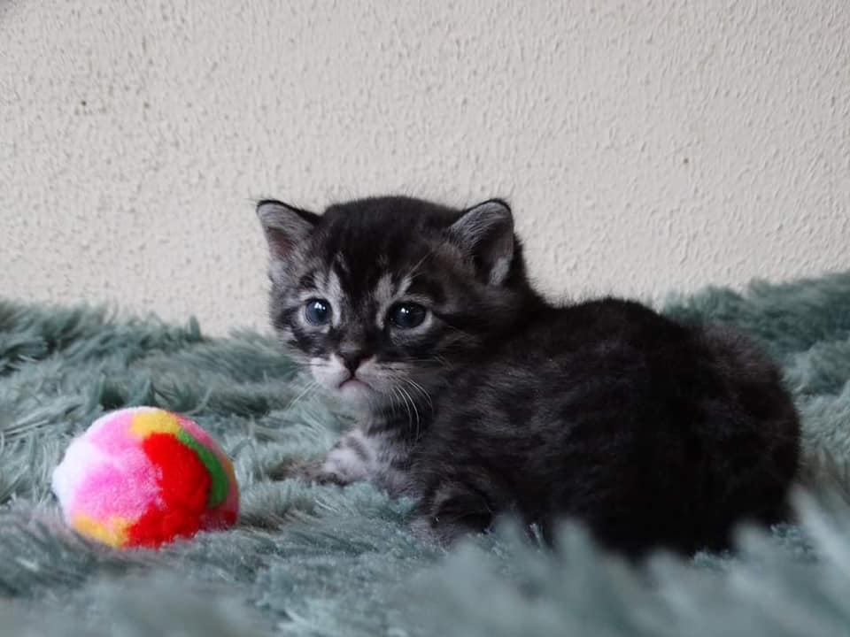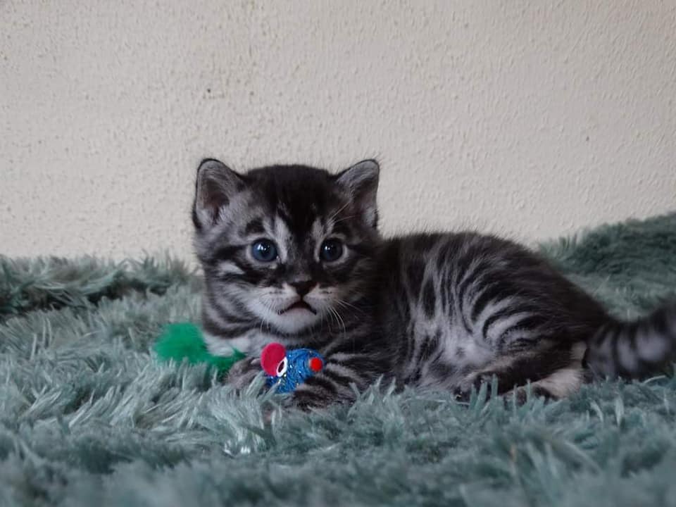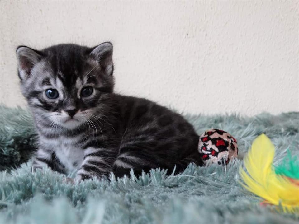 Silver charcoal, the color I like very much. A beautiful kitten and what a nice and naughty character.