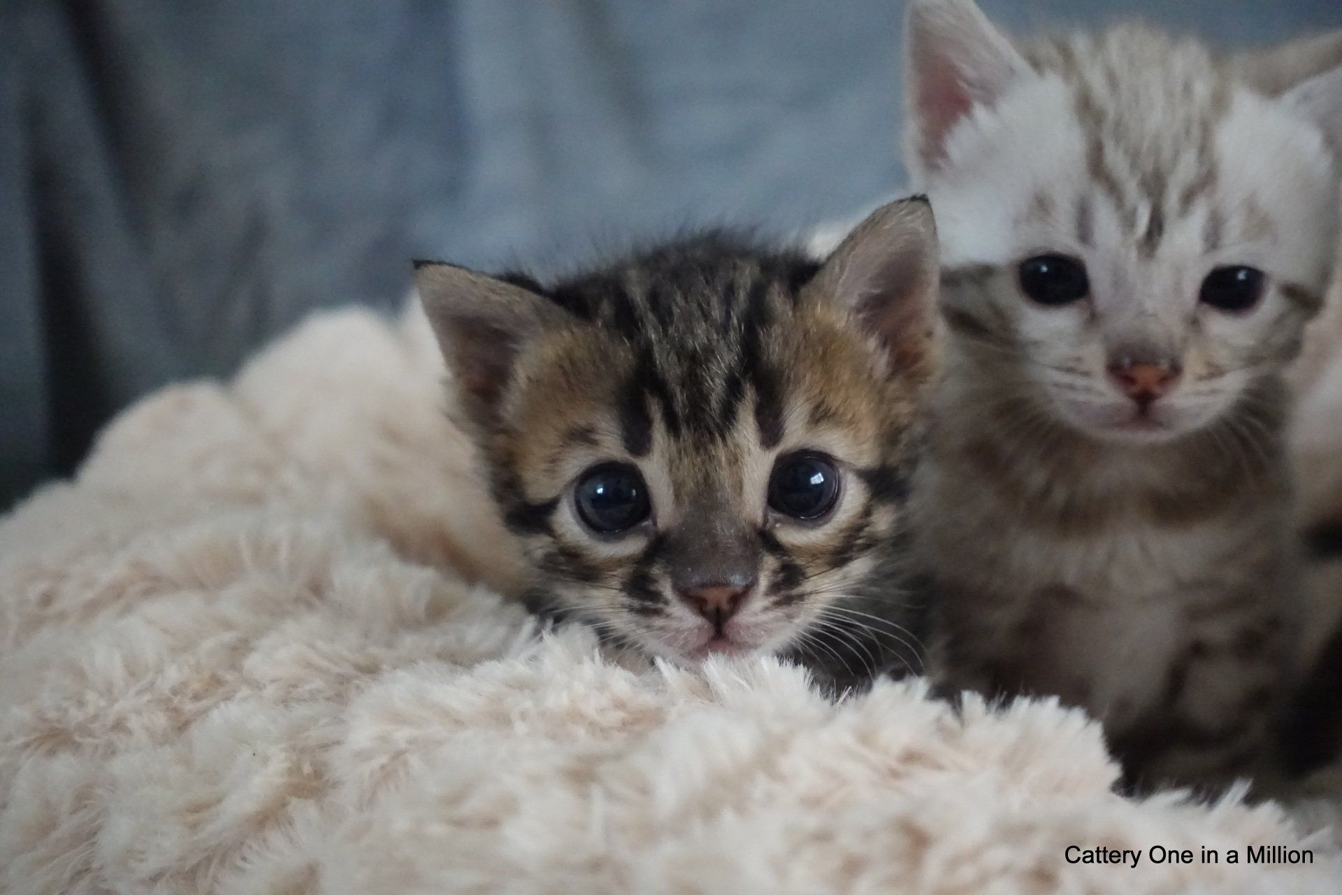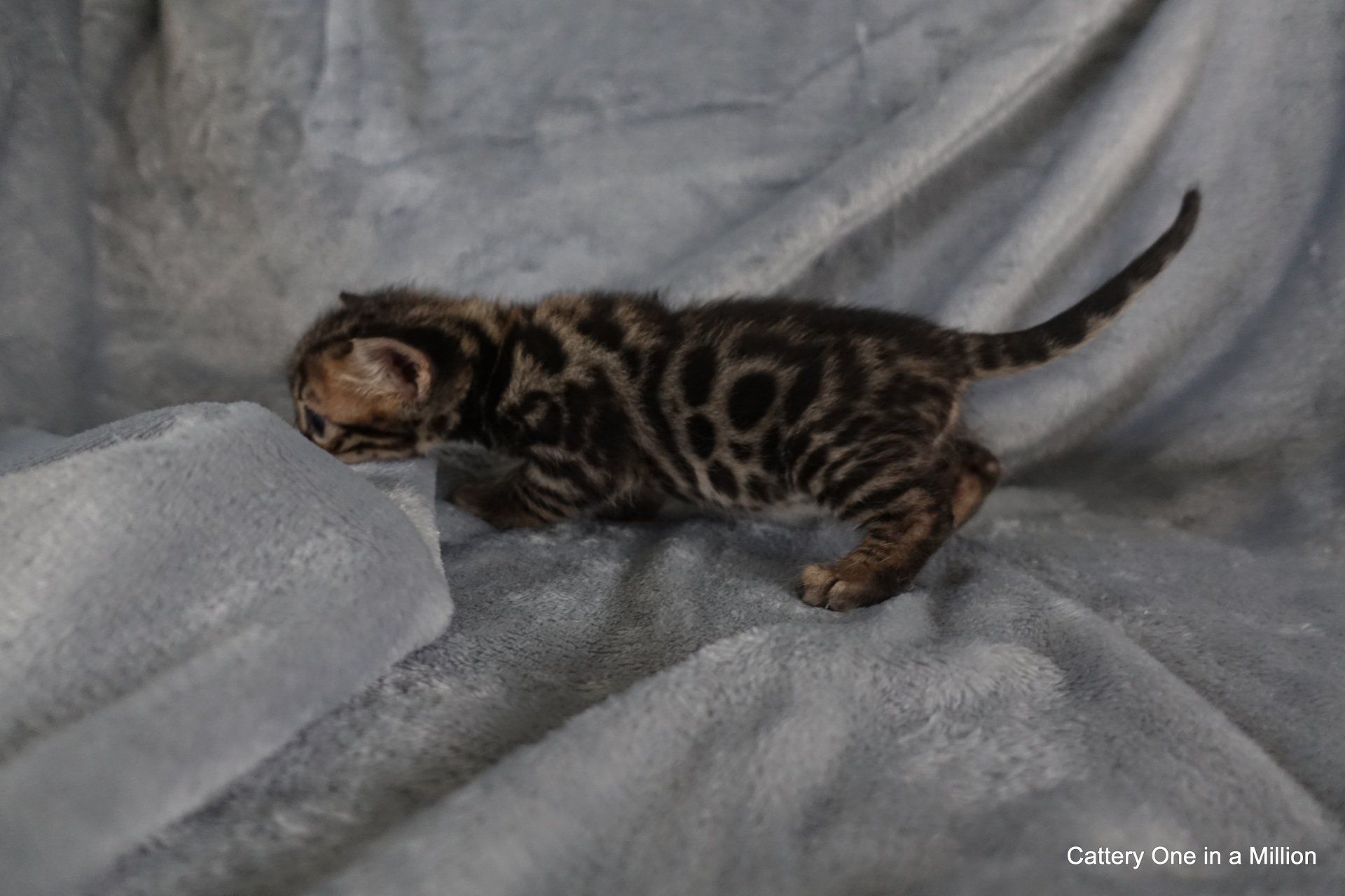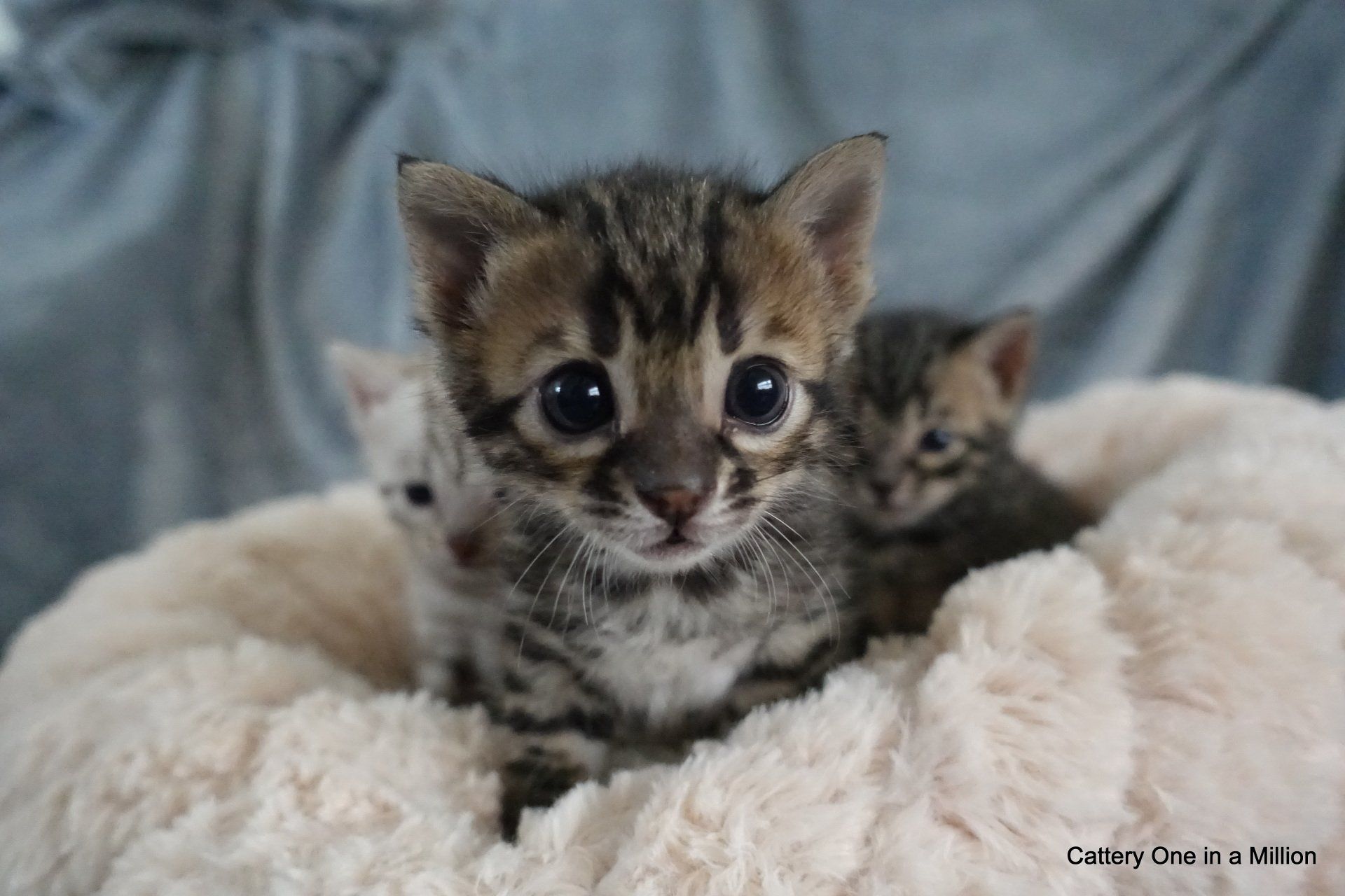 Nienna was born on 04-12-2019 by cesarean section Nienna is Black tabby Spotted/Rozetted in colour.Her tests : PKdef N/N HCM ?PKD/CIN ?FIV negativeFeLV negativePRA-b N/N via parentsThe parents are: Dam: One in a Million It Just Started with a WhisperBlack tabby spotted / Rozetted - Apb & lynx carrierFather: One in a Million Rare Bright TopazBlack Silver Tabby - Apb/Apb - sepia carrier