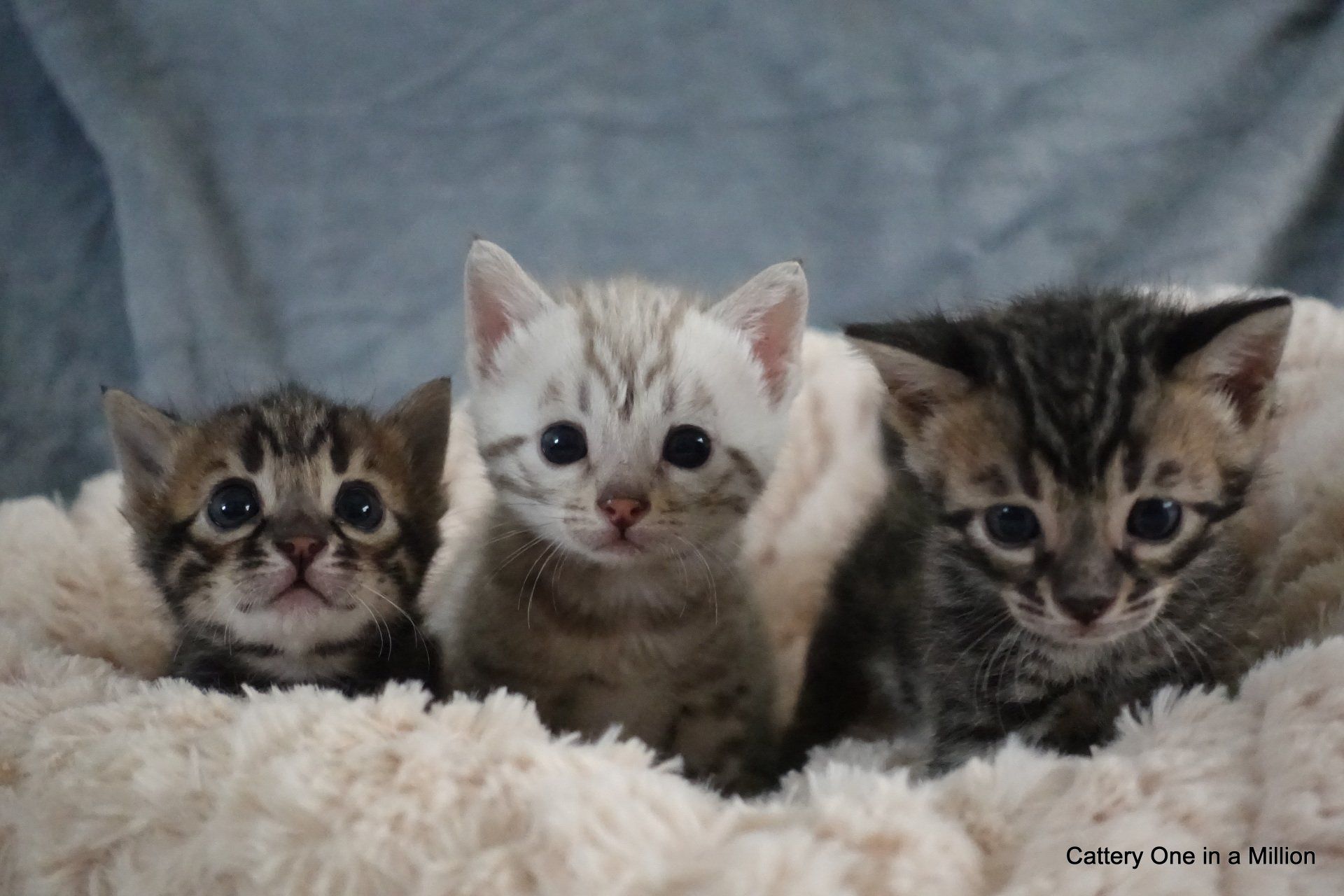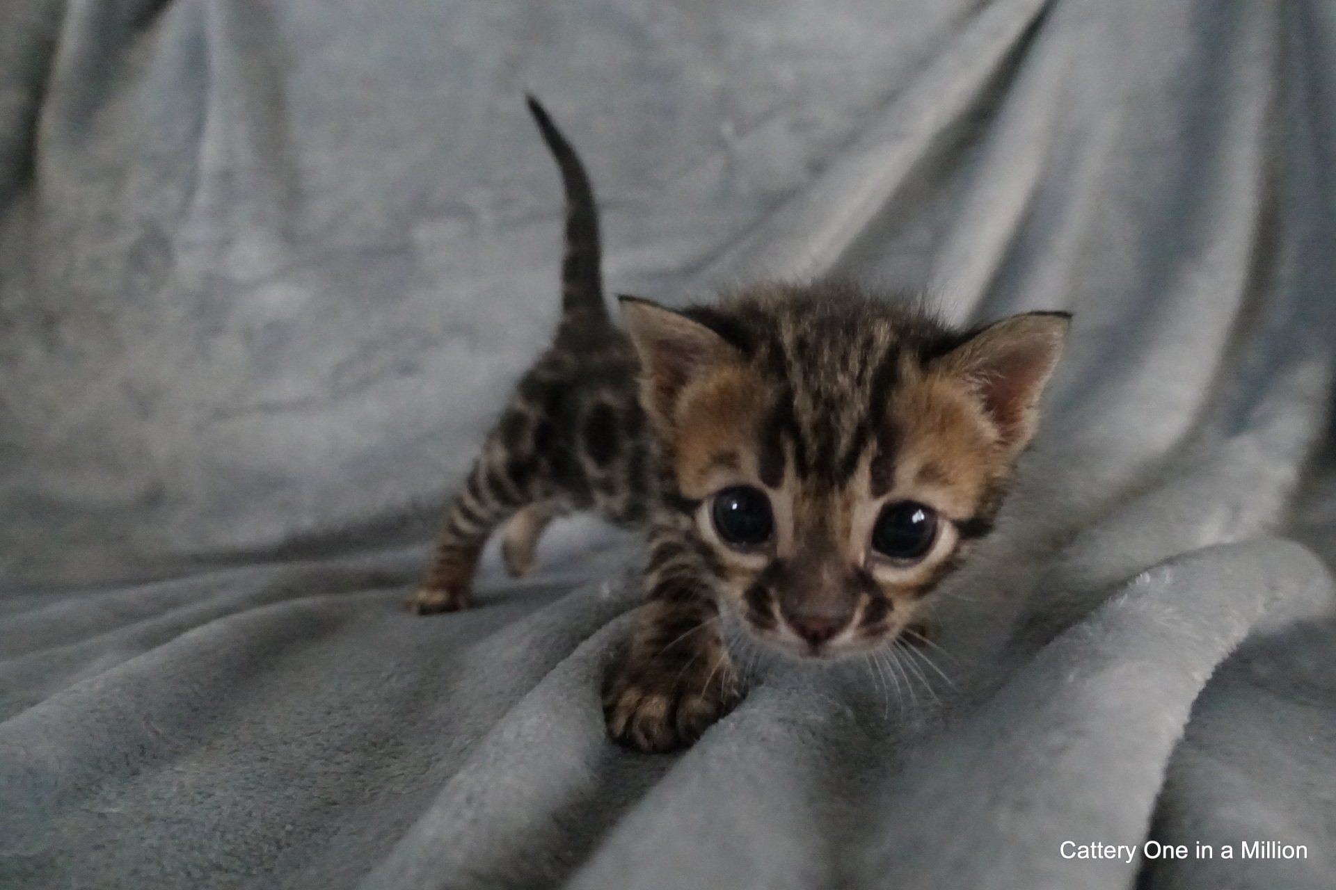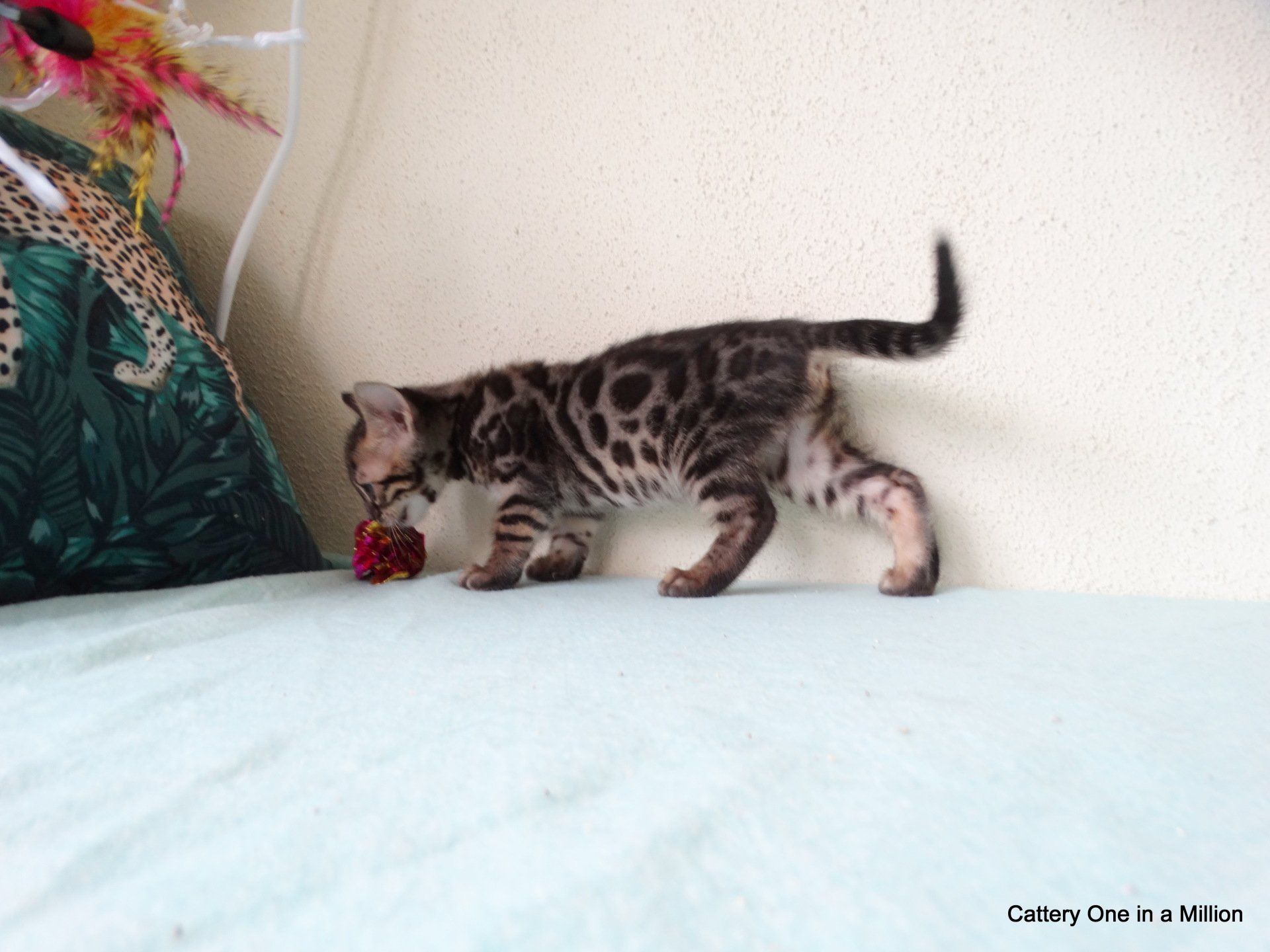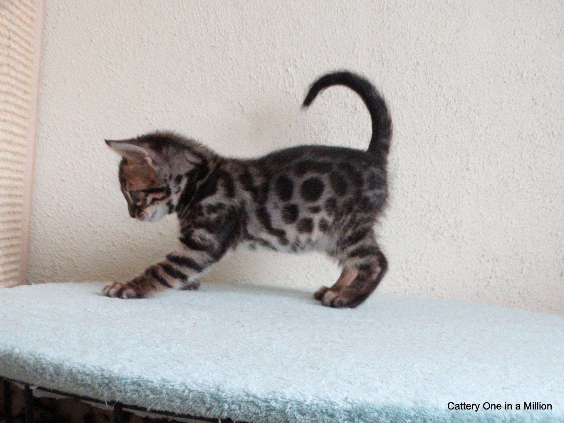 Nienna was born on 04-12-2019 by cesarean section Nienna is Black tabby Spotted/Rozetted in colour.Her tests : PKdef N/N HCM ?PKD/CIN ?FIV negativeFeLV negativePRA-b N/N via parentsThe parents are: Dam: One in a Million It Just Started with a WhisperBlack tabby spotted / Rozetted - Apb & lynx carrierFather: One in a Million Rare Bright TopazBlack Silver Tabby - Apb/Apb - sepia carrier