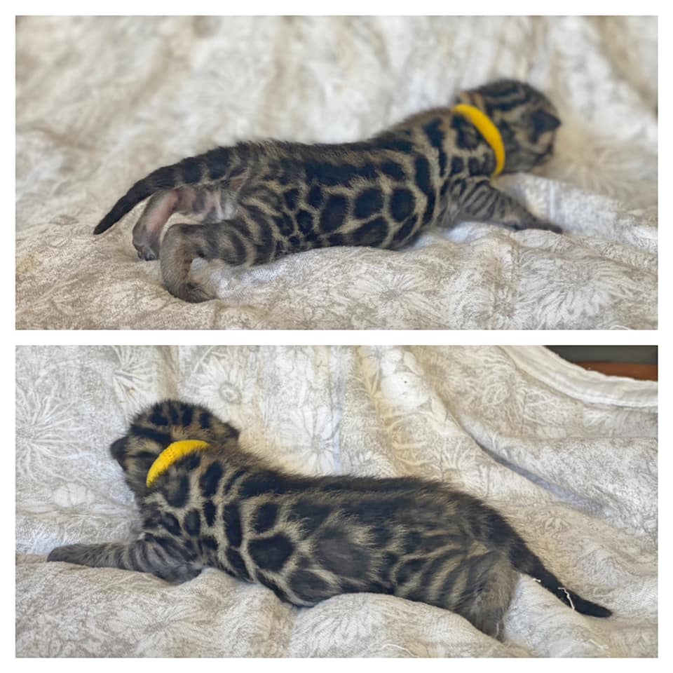 Black Tabby Spotted Apb/Apb - Seal lynx carrier15-02-2021PKDef N/N via parents PRA-b N/N via parentsPKD/CIN -HCM -FIV negative FeLV negativeFather Mangosteen ThunderMother Dare to Dream Viva la Fiesta