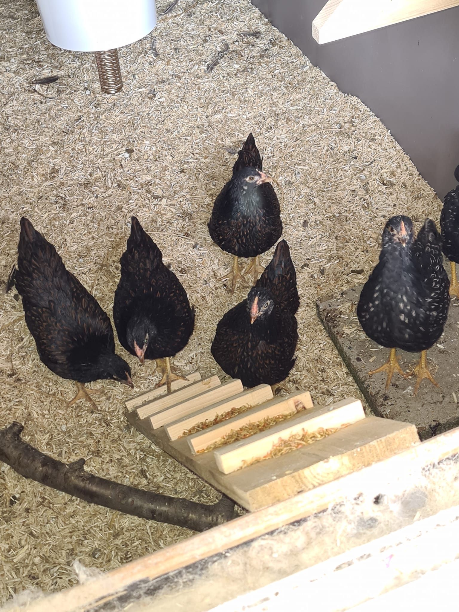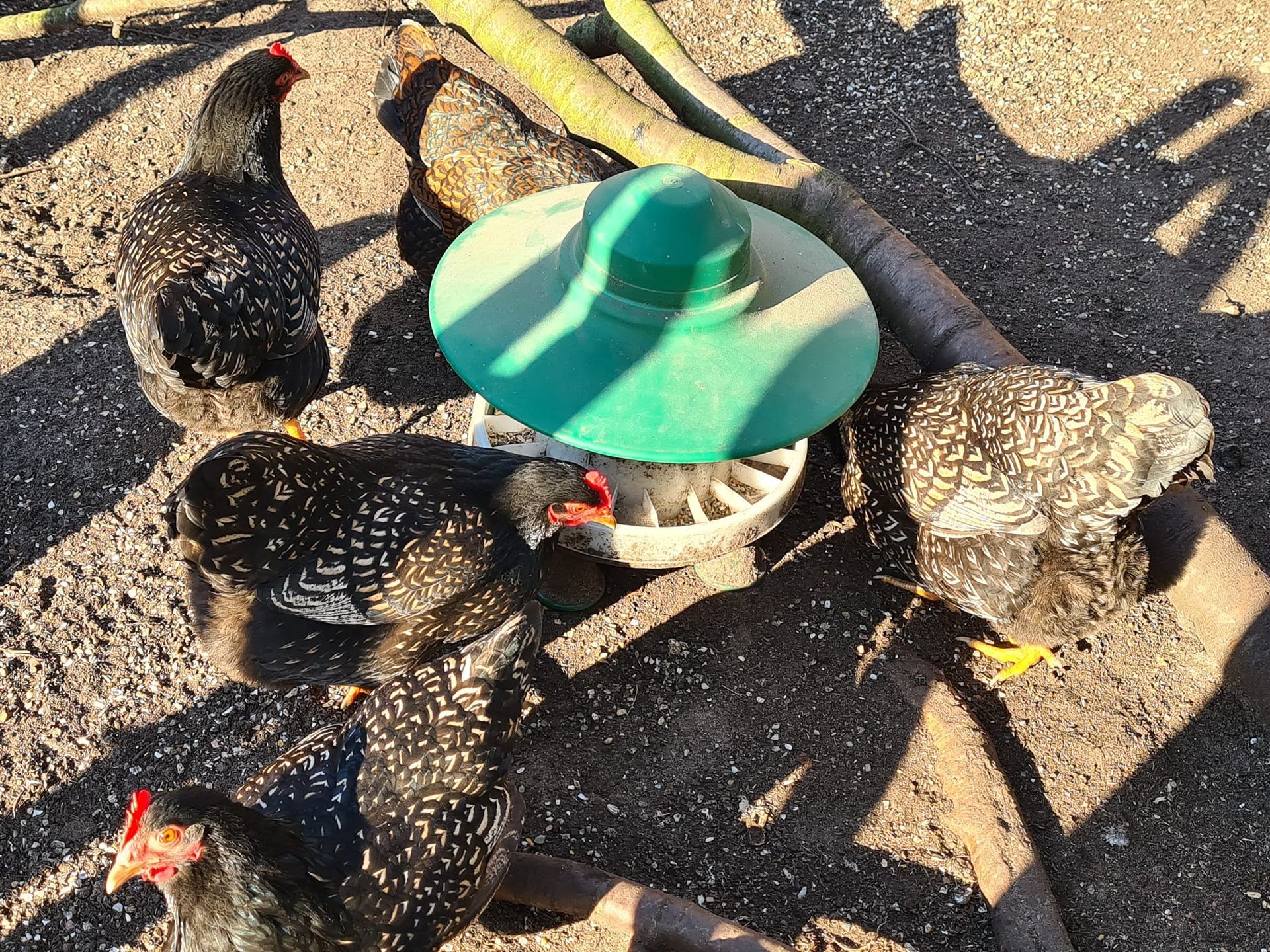 De dames zijn geboren op 06.02.2022 en zijn bij ons komen wonen toen ze slechts 5 dagen oud waren. Na een aantal weken binnen in huis onder een warmteplaat konden ze naar hun eigen verblijf. Inmiddels zijn ze opgegroeid tot volwassen kippen en genieten ze heerlijk in onze tuin.