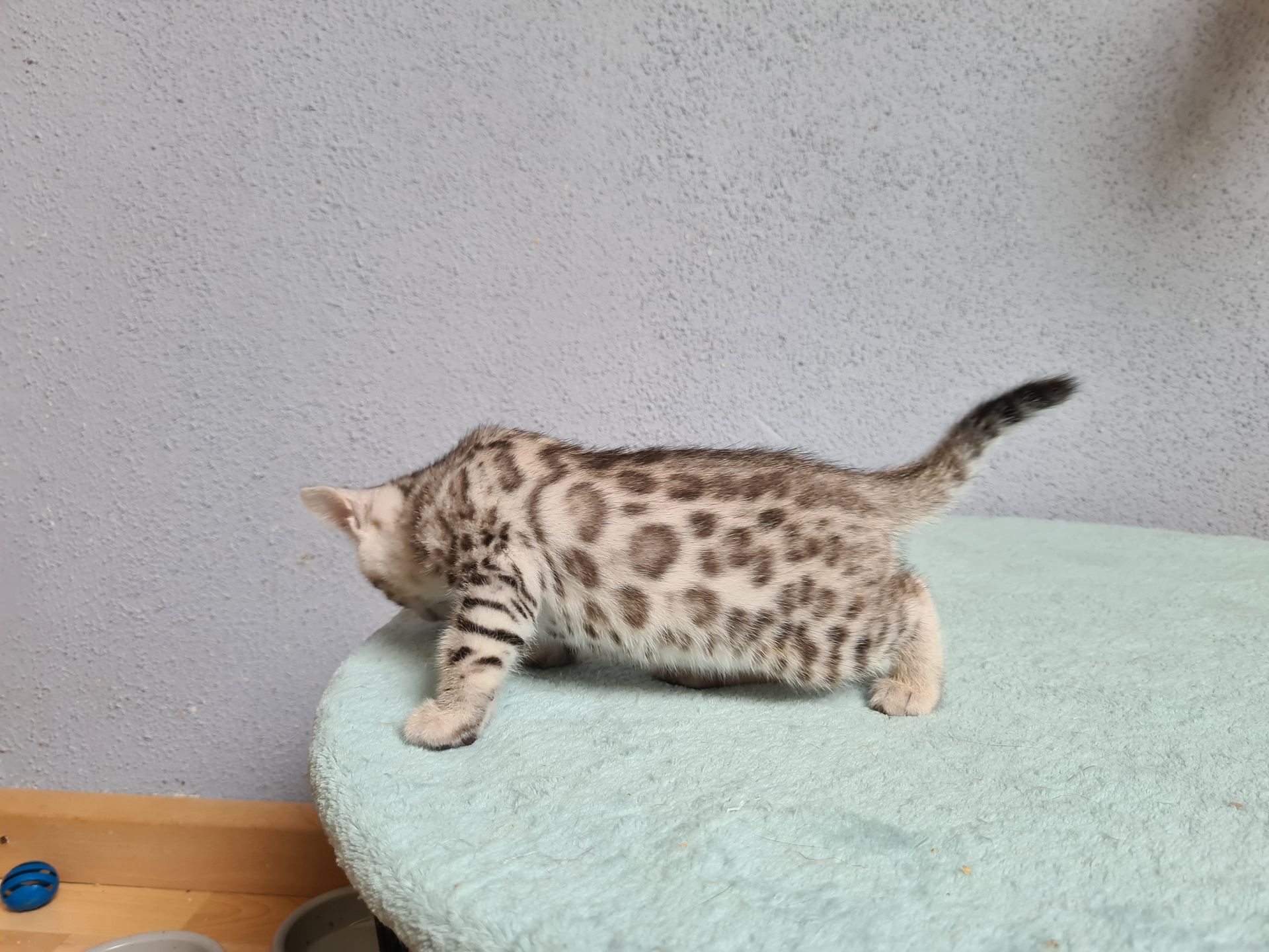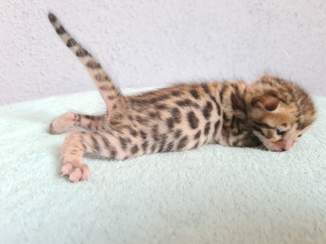 Mama en de kittens doen het super goed. Alle kittens zijn spotted/rozetted.