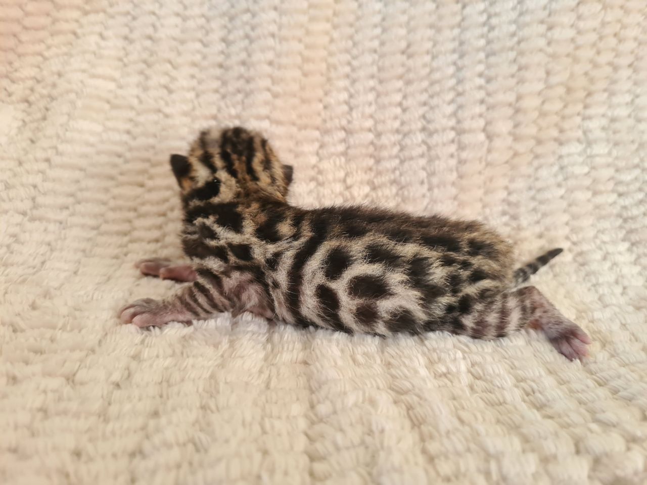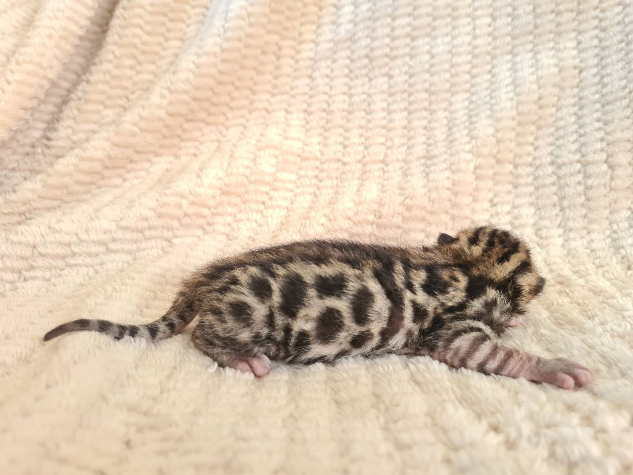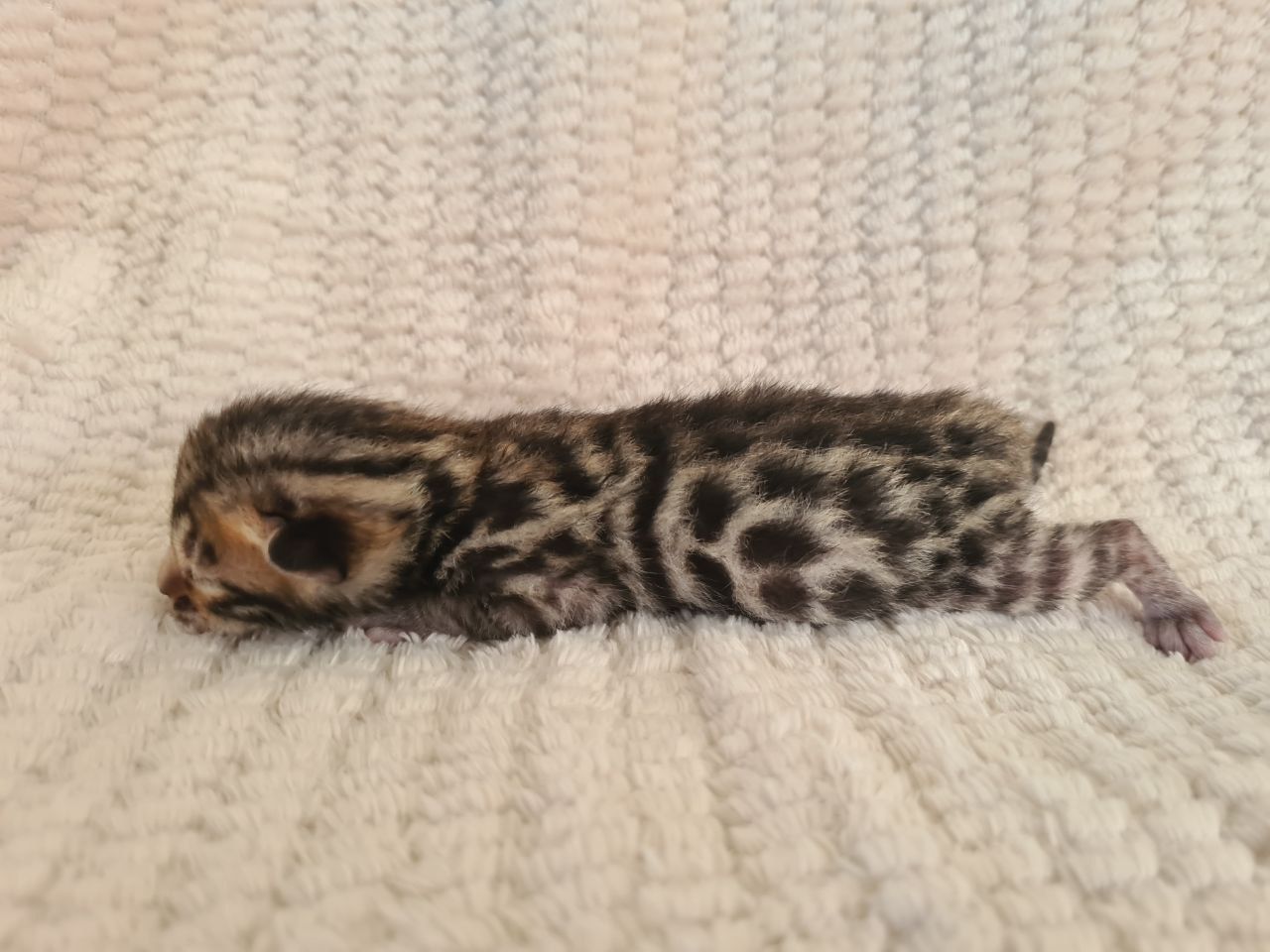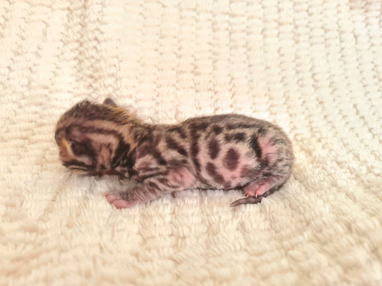 Het 1e kitten was een groot poesje die inderdaad in stuit ter wereld kwam. Het 2de kitten was opnieuw een poes in stuit deze ietsje kleiner. Het 3de kitten was duidelijk veel jonger, een piepklein katertje van slechts 54 gram. Nog helemaal roze maar hij maakte direct een sterke indruk.
