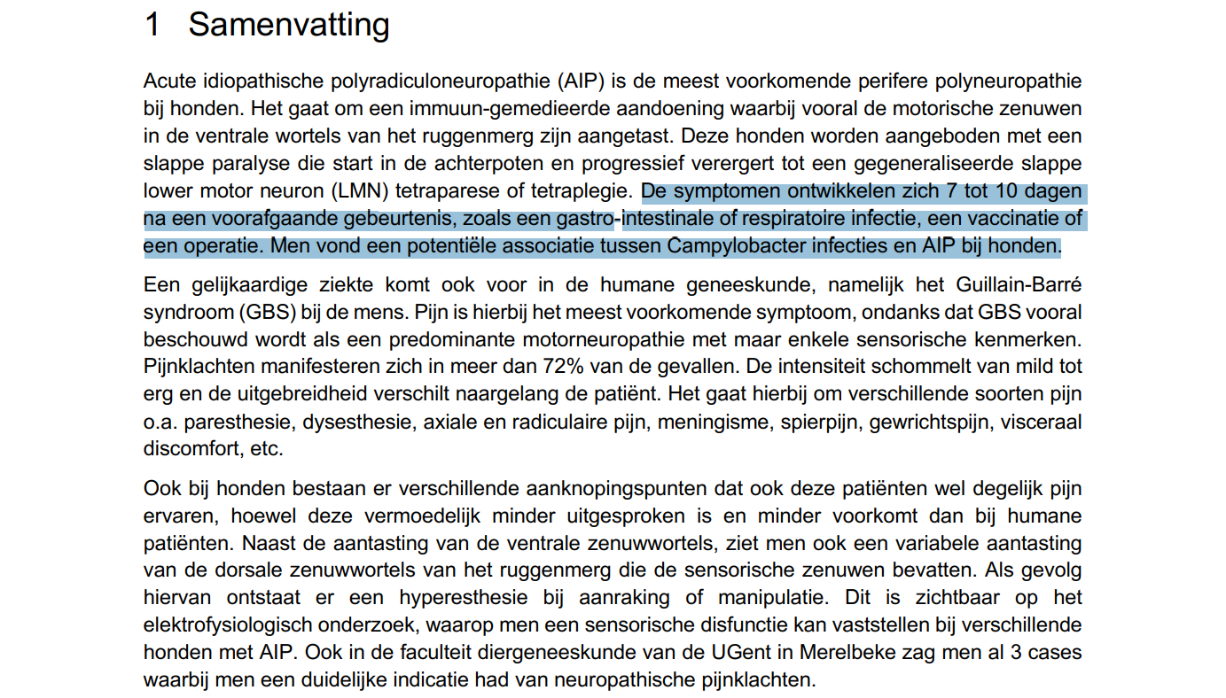 Wolf heeft AIP - acute idiopathische polyradiculoneuropathie