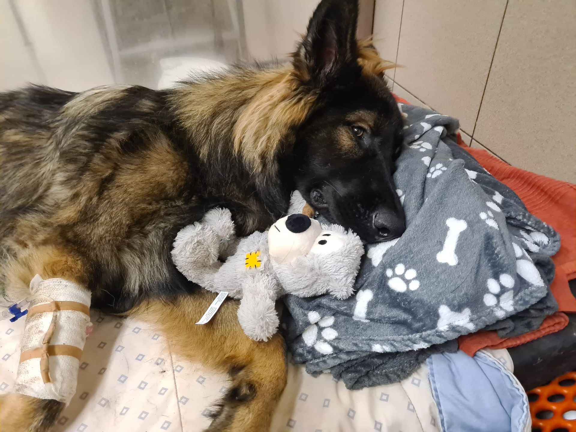 Na het stabiliseren moeten we er rekening mee houden dat het herstel pas start na 8 weken. Het gaat dus een hele uitdaging worden komende tijd om hem te verzorgen.