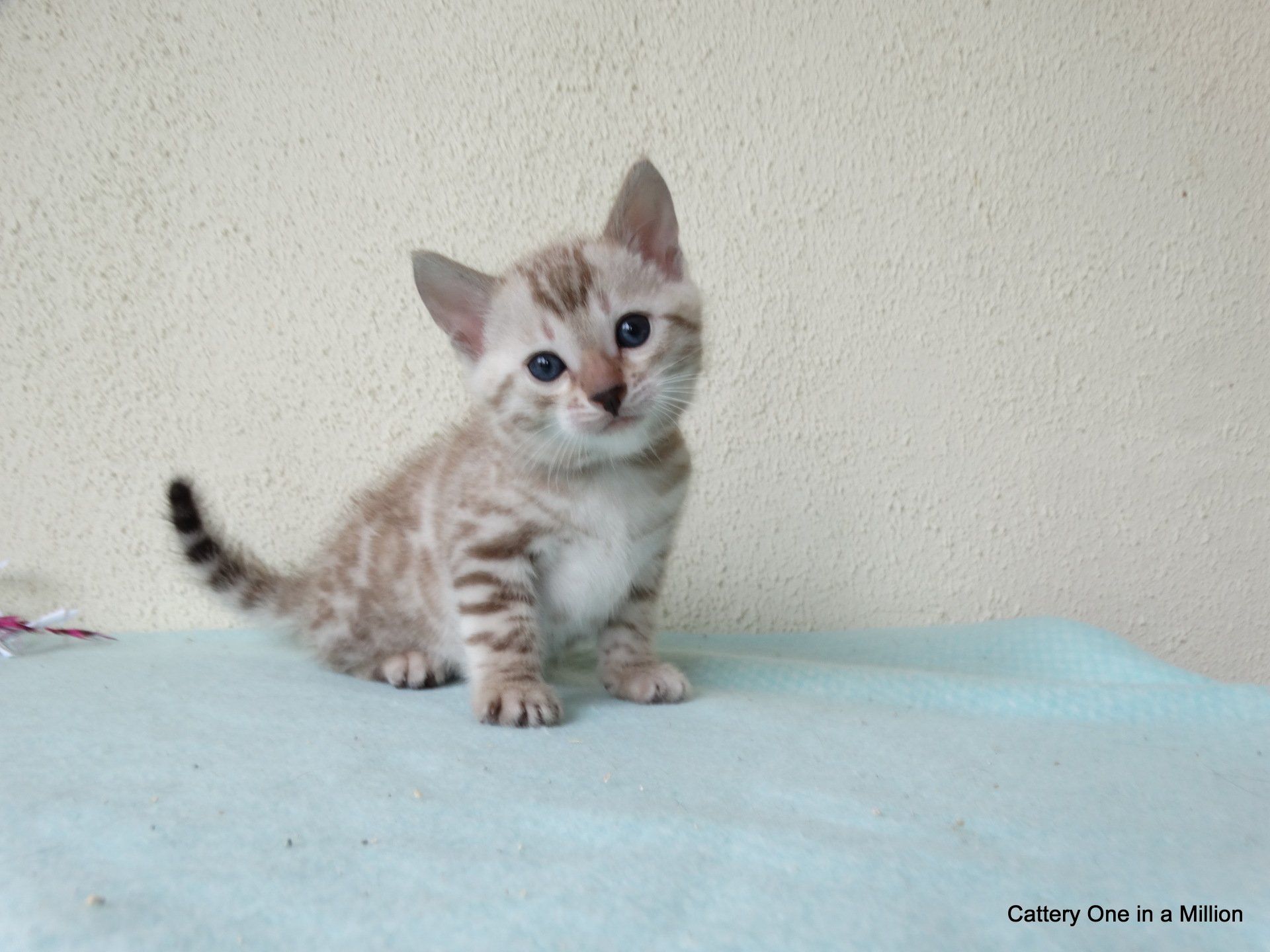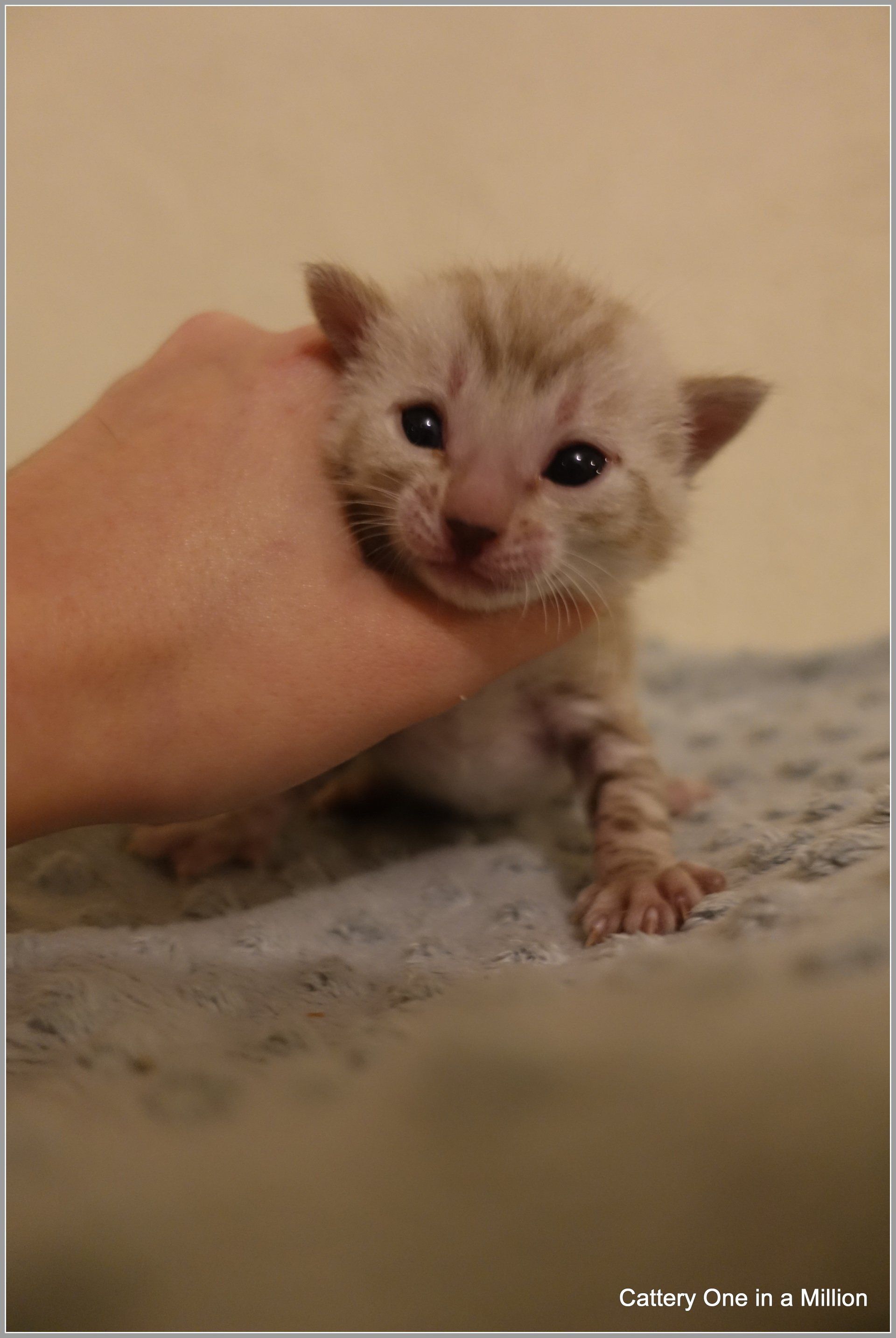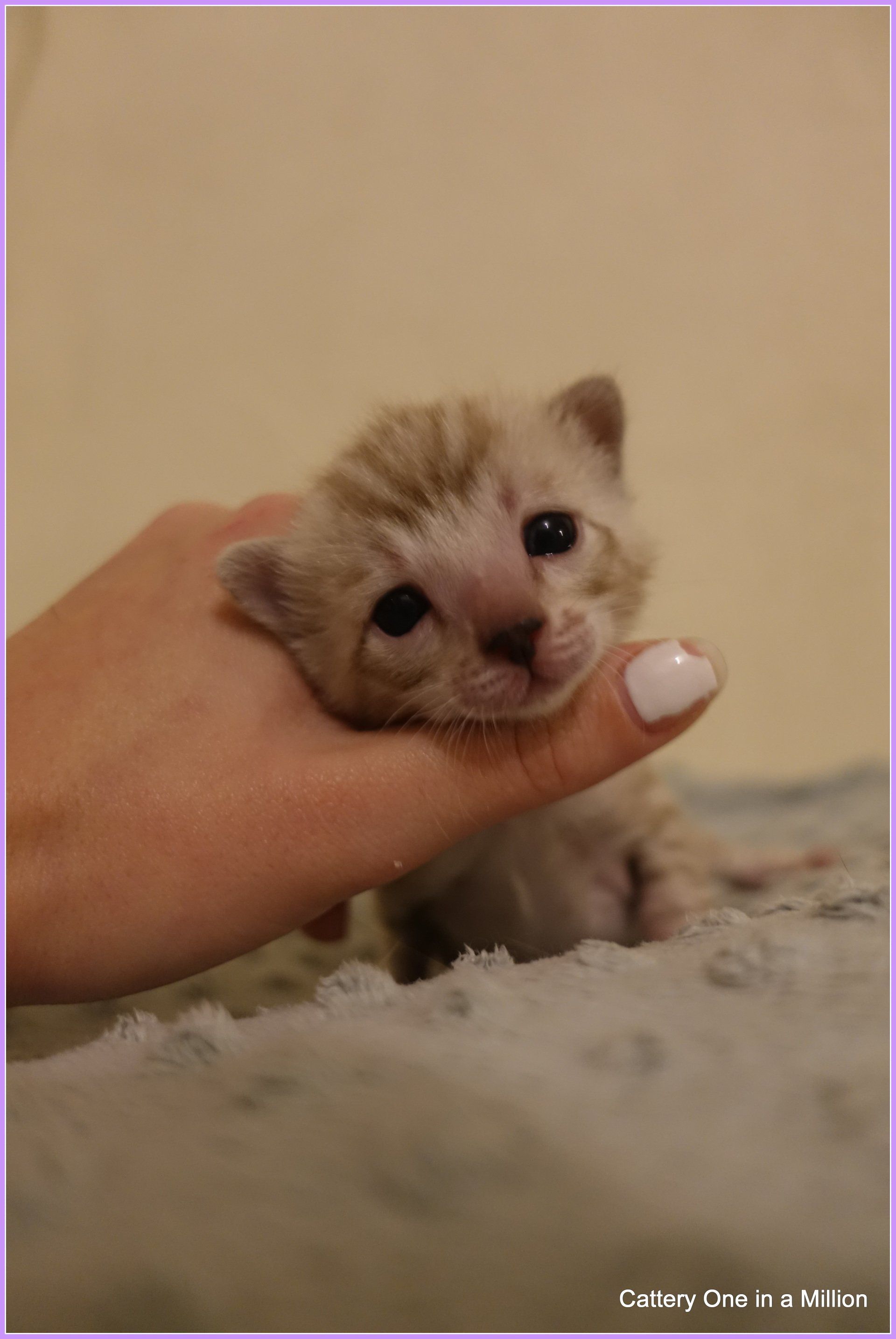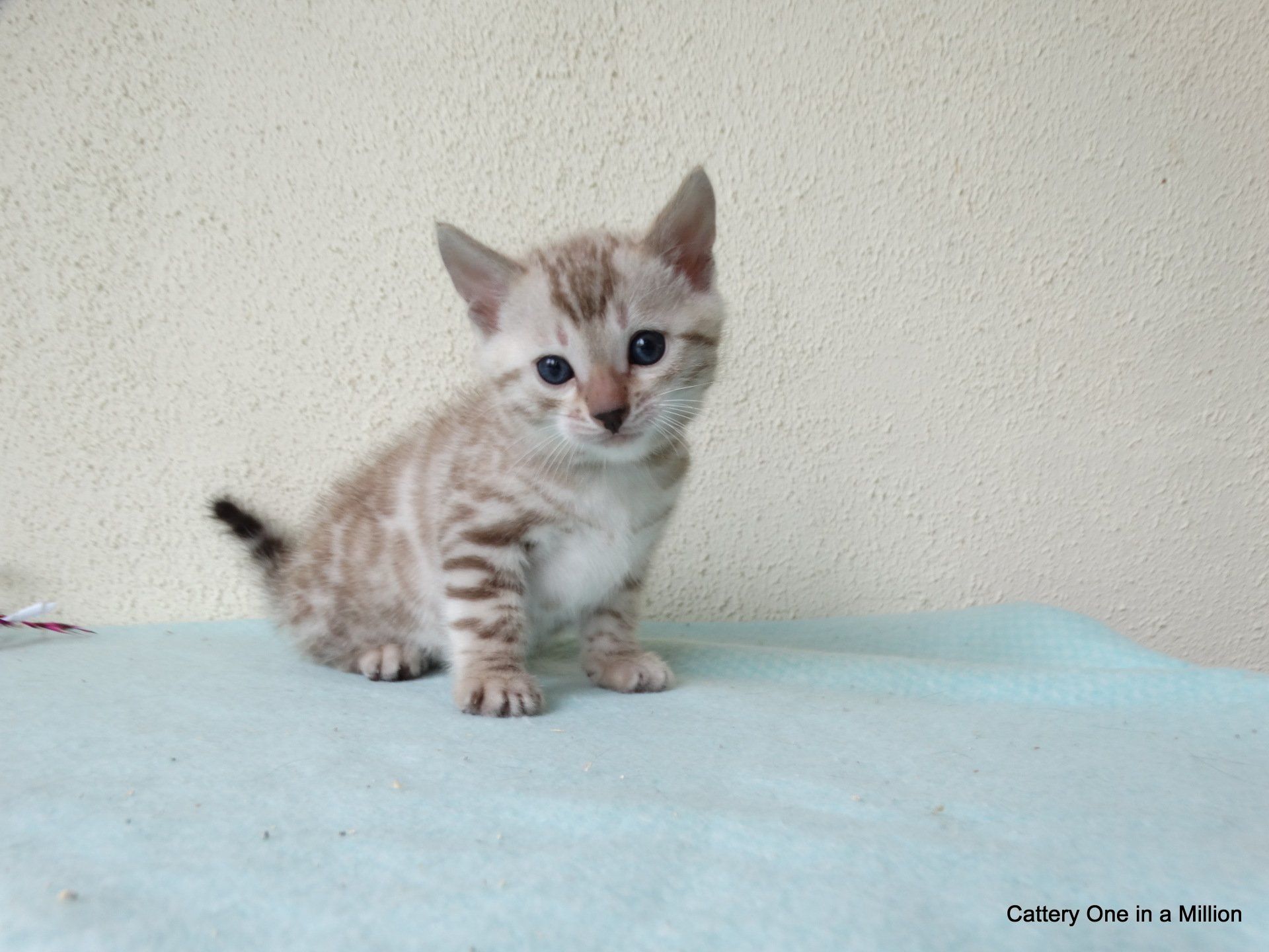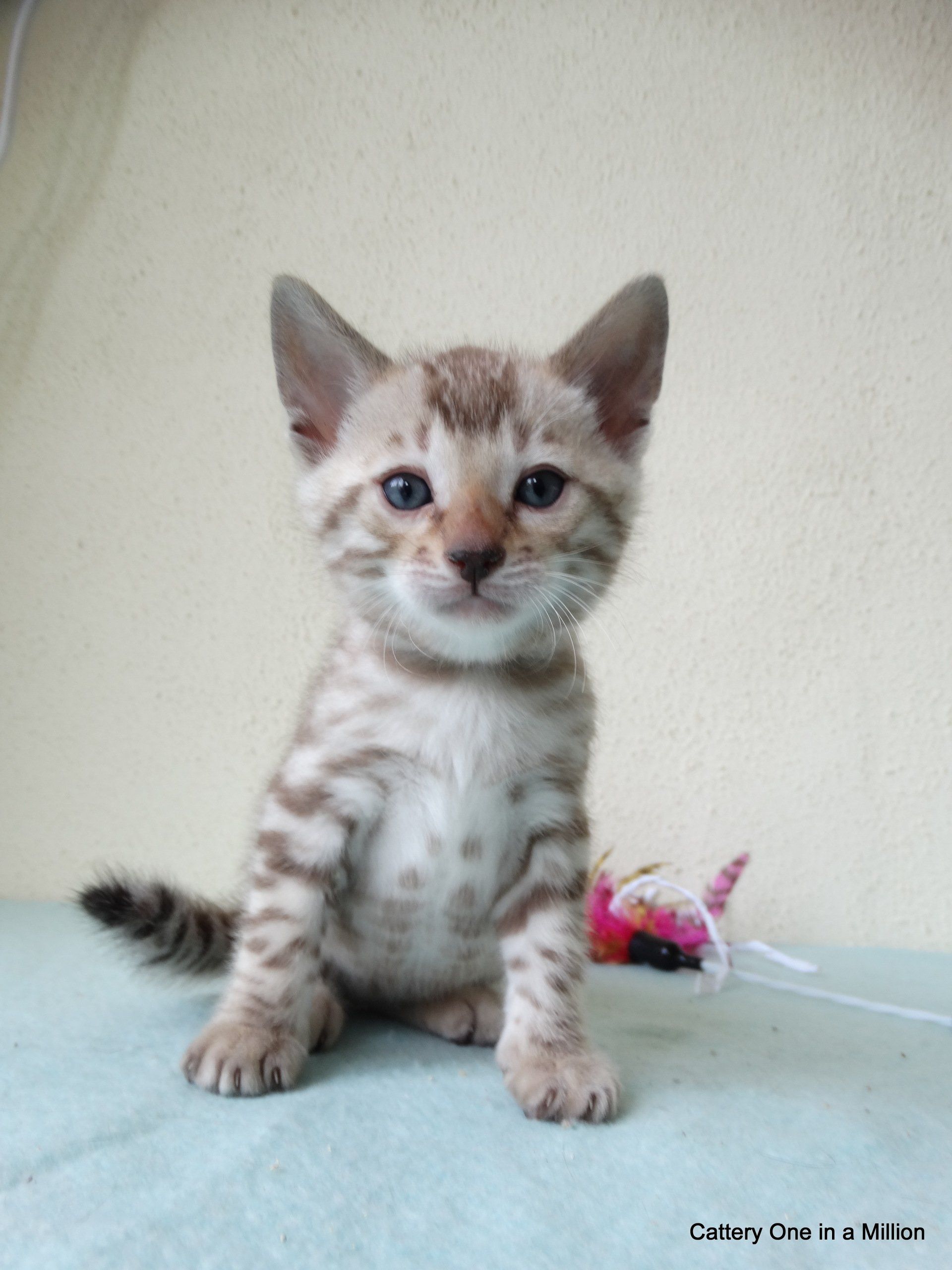 Ch. One in a Million Strawberry Cupcake aka Skye (seal lynx) & One in a Million Mr. Spots N Dots aka Maxx (seal sepia charcoal) became parents late on the evening of December 14, 2019 to 6 beautiful seal mink Bengals. 4 males and 2 females. Unfortunately we had to put the yellow kitten to sleep after 1 day. The kitten was found to have a cleft palate to such an extent that surgery was not possible at a later age. Unfortunately, letting her go was the only right option for her. Skye is doing well and is a really sweet mother. Interested? Send us a message for more information.