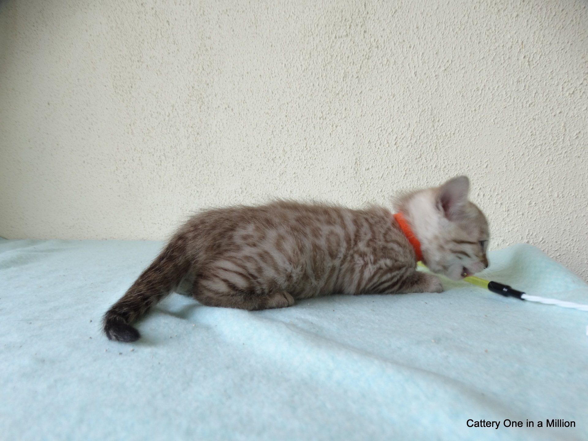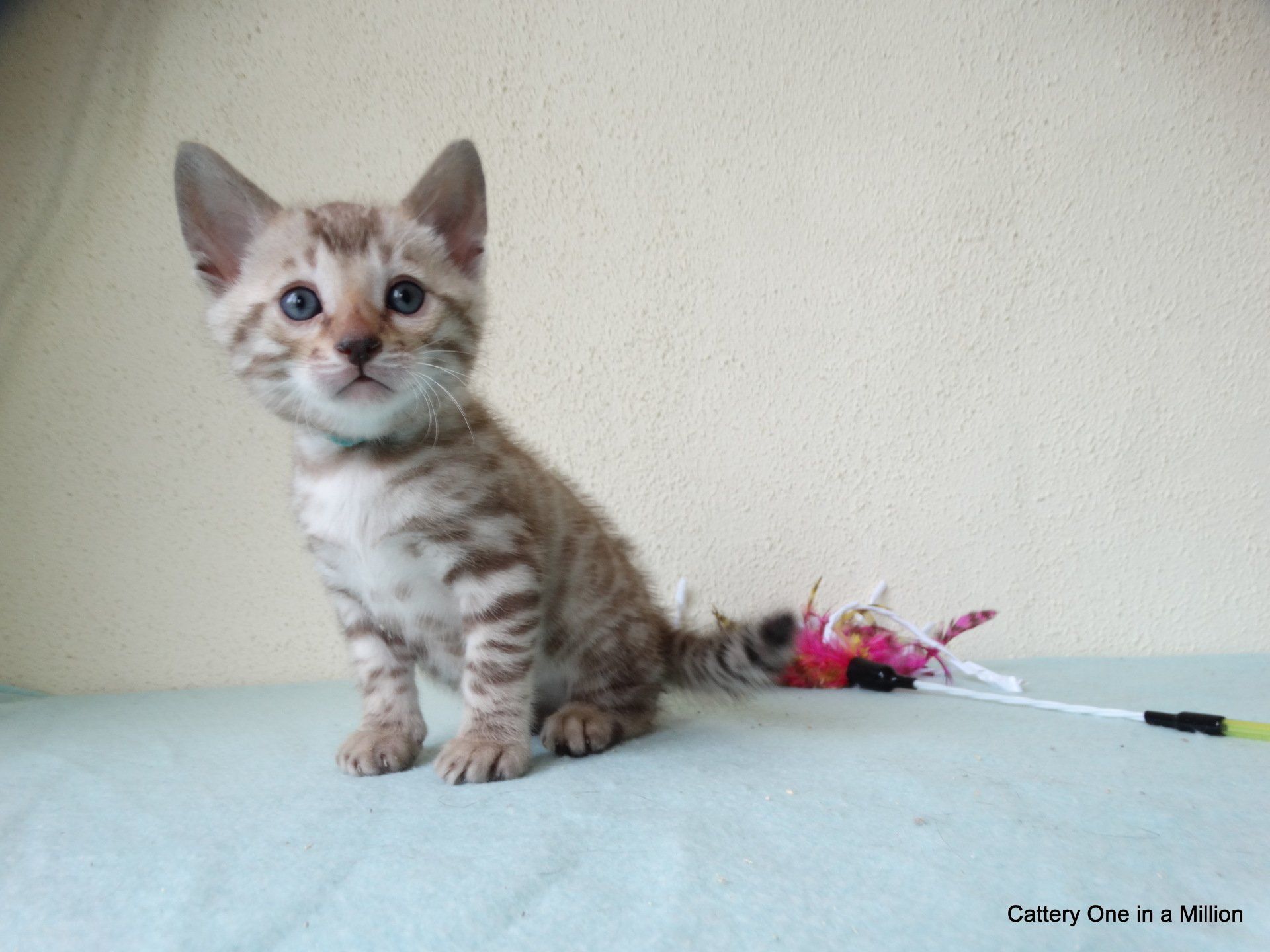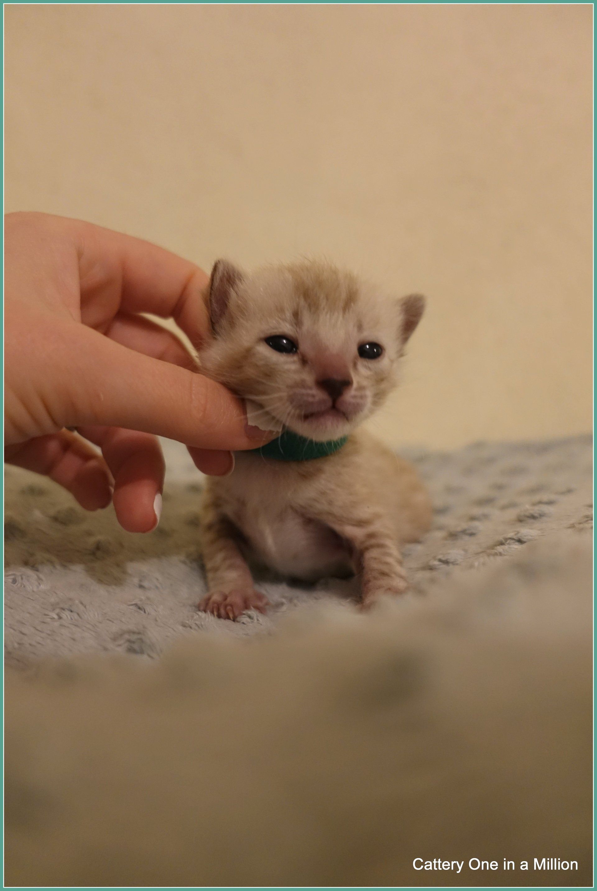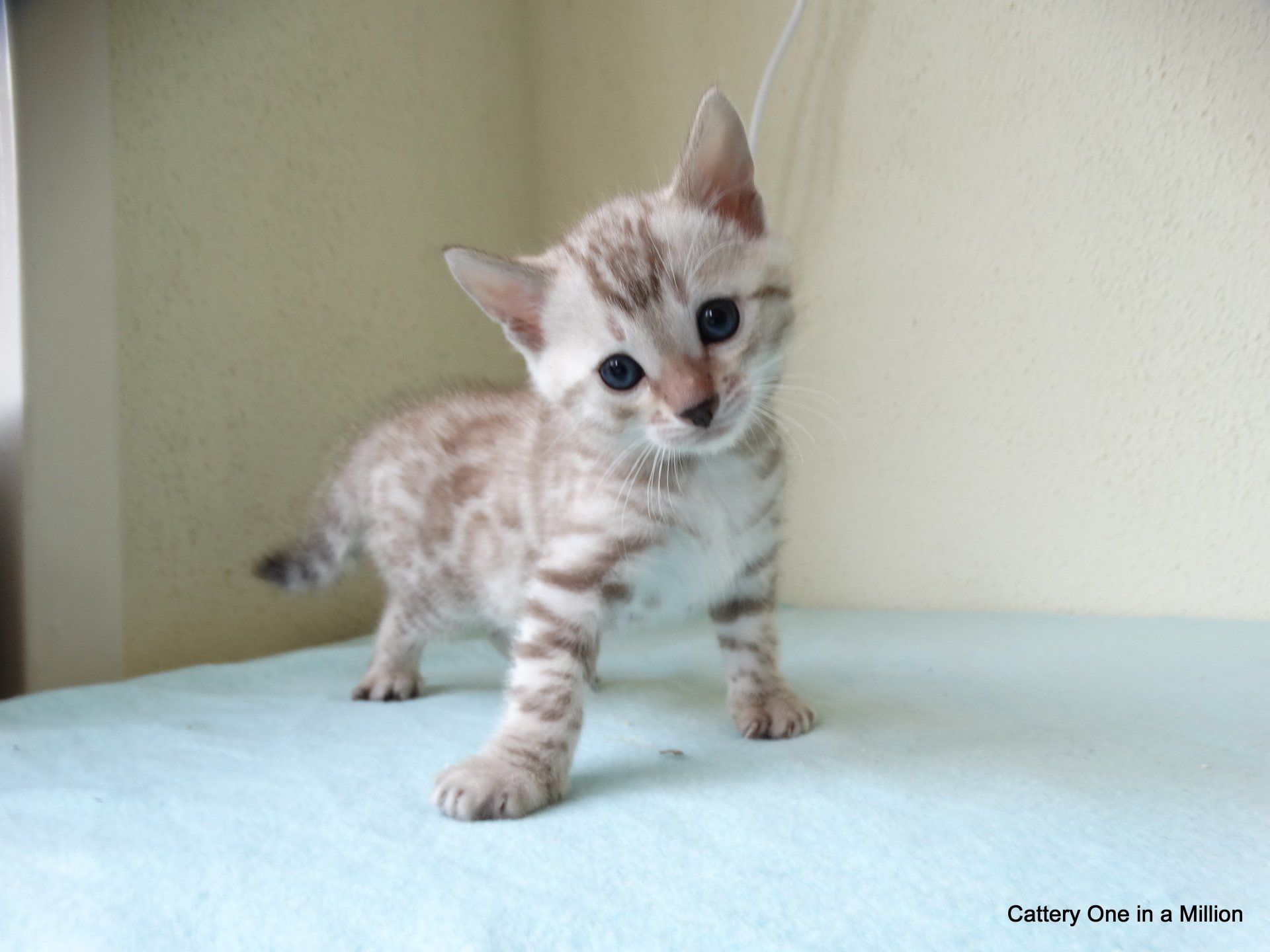 Ch. One in a Million Strawberry Cupcake aka Skye (seal lynx) & One in a Million Mr. Spots N Dots aka Maxx (seal sepia charcoal) became parents late on the evening of December 14, 2019 to 6 beautiful seal mink Bengals. 4 males and 2 females. Unfortunately we had to put the yellow kitten to sleep after 1 day. The kitten was found to have a cleft palate to such an extent that surgery was not possible at a later age. Unfortunately, letting her go was the only right option for her. Skye is doing well and is a really sweet mother. Interested? Send us a message for more information.