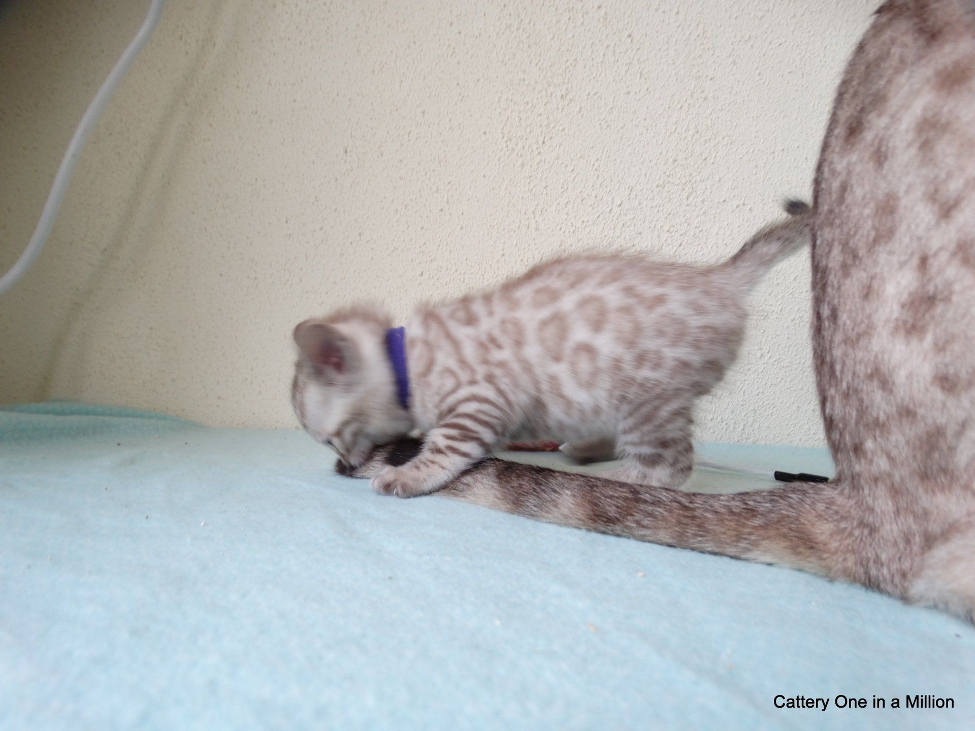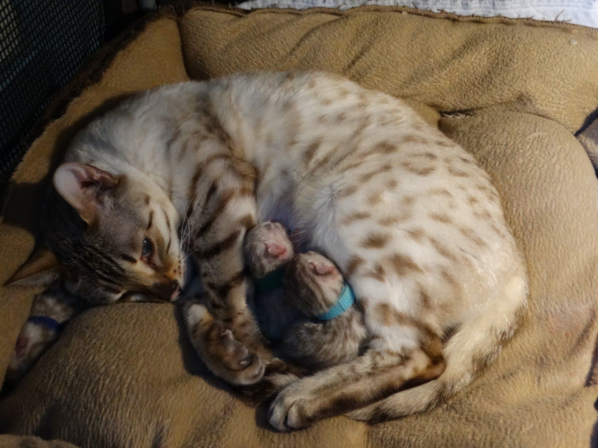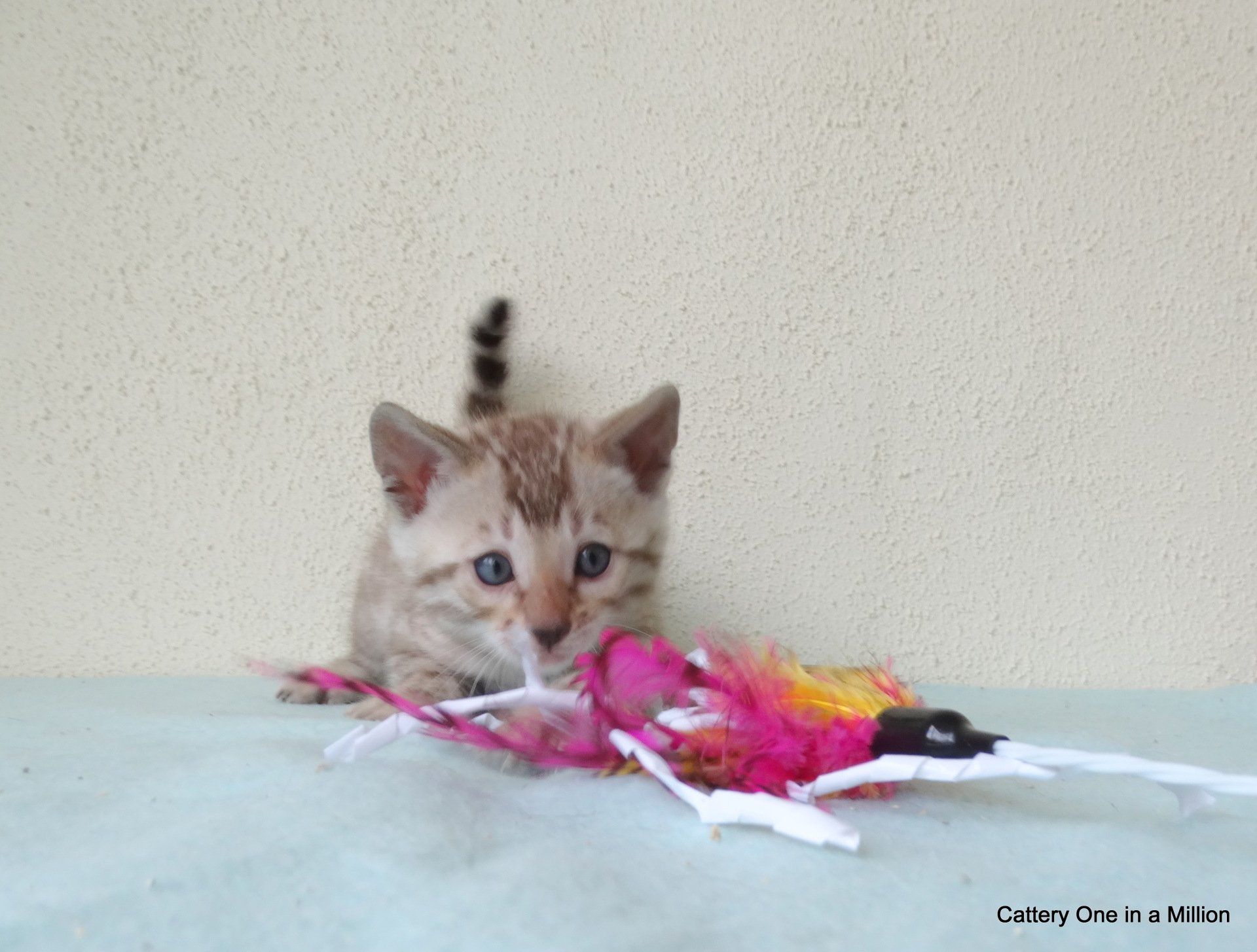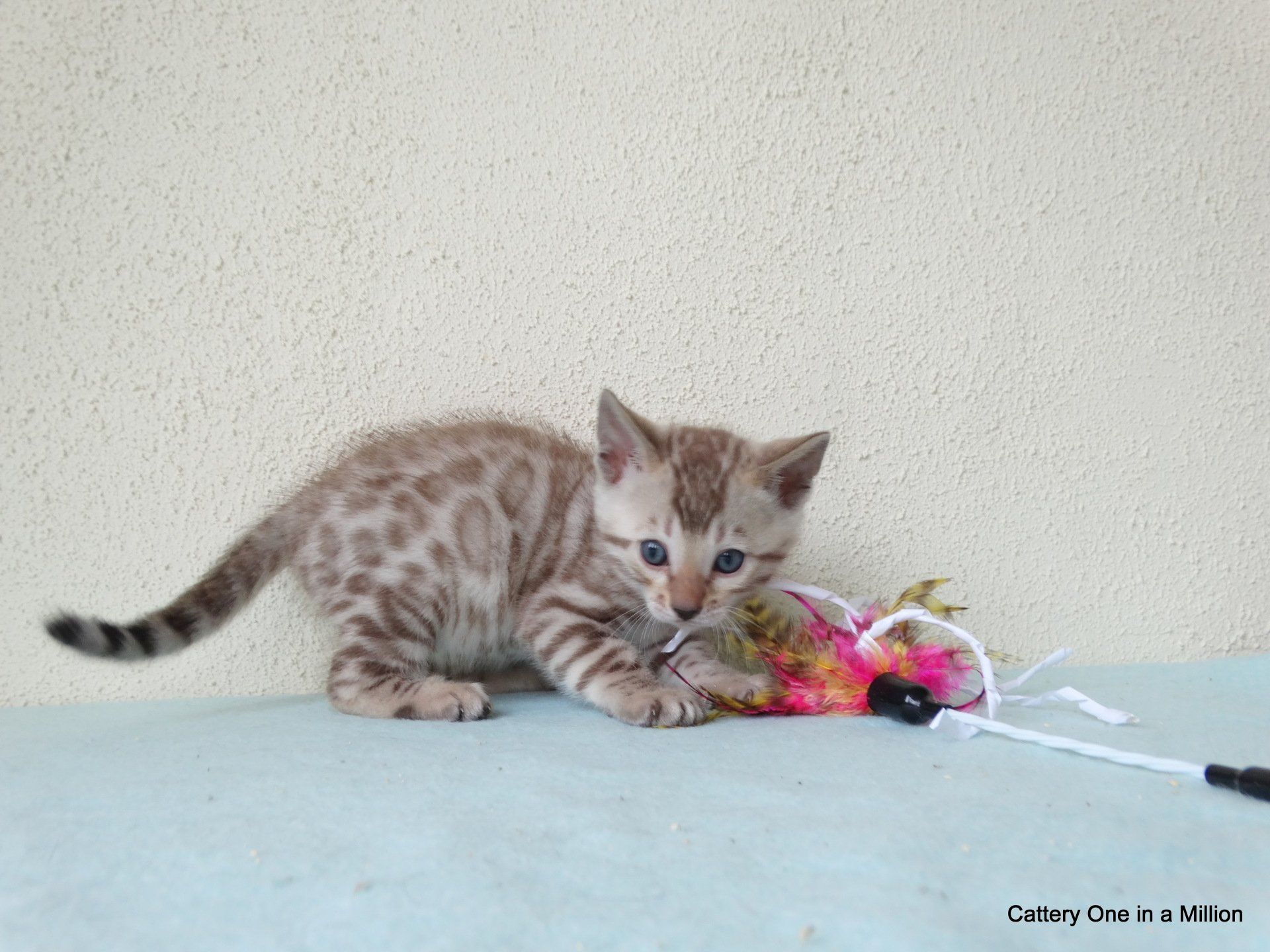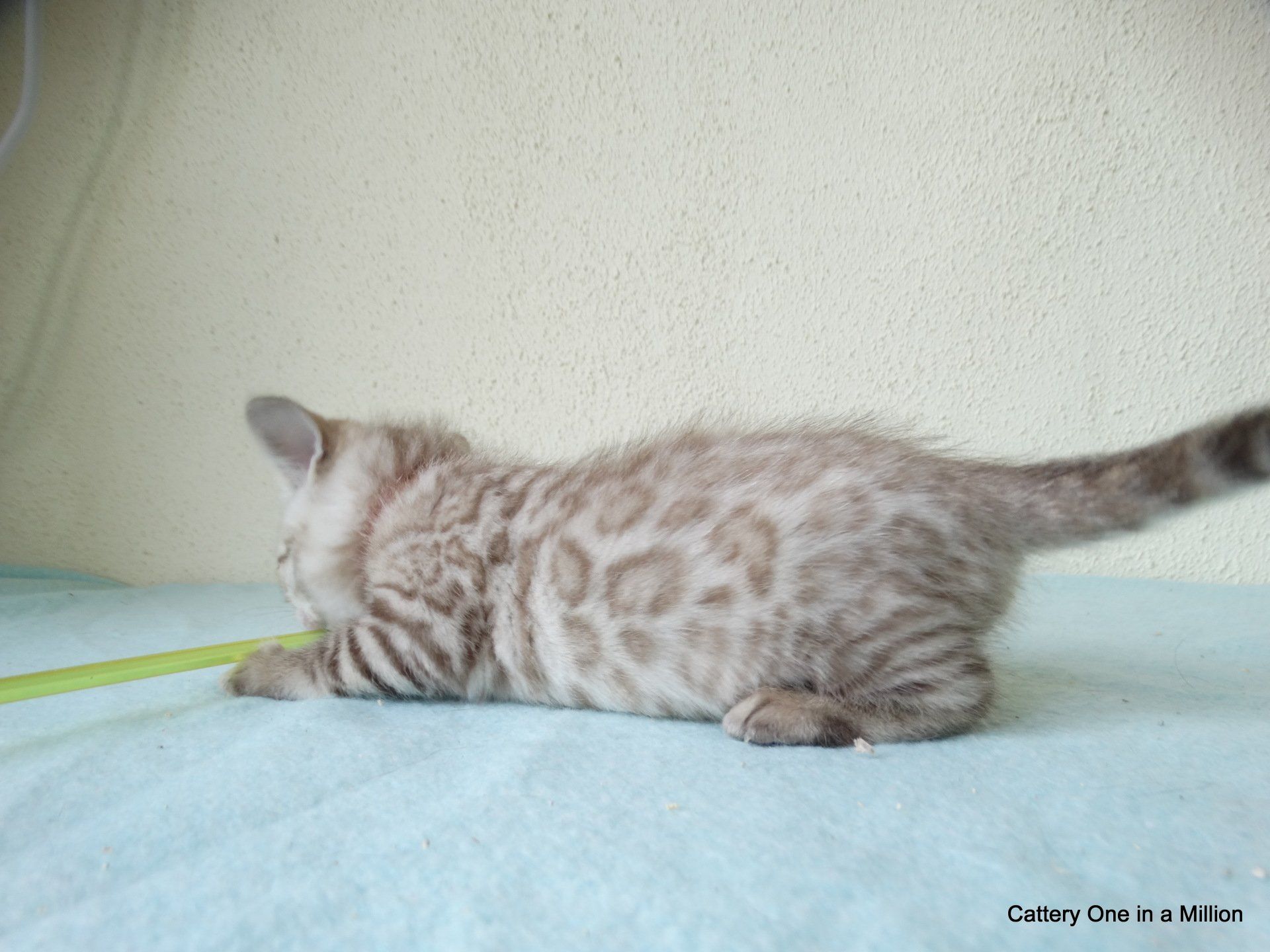 Ch. One in a Million Strawberry Cupcake aka Skye (seal lynx) & One in a Million Mr. Spots N Dots aka Maxx (seal sepia charcoal) became parents late on the evening of December 14, 2019 to 6 beautiful seal mink Bengals. 4 males and 2 females. Unfortunately we had to put the yellow kitten to sleep after 1 day. The kitten was found to have a cleft palate to such an extent that surgery was not possible at a later age. Unfortunately, letting her go was the only right option for her. Skye is doing well and is a really sweet mother. Interested? Send us a message for more information.