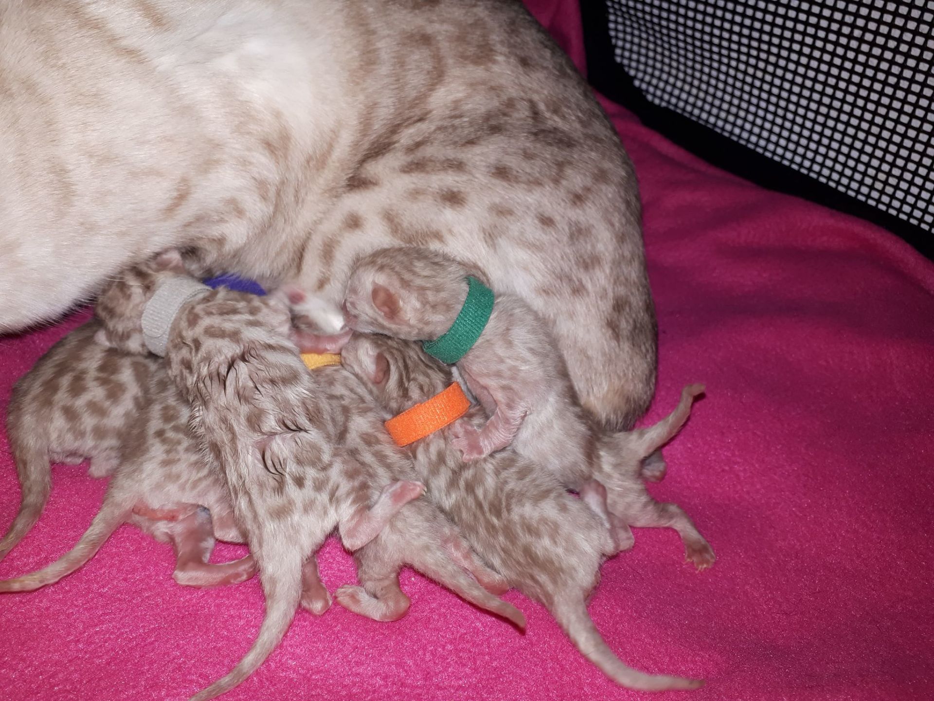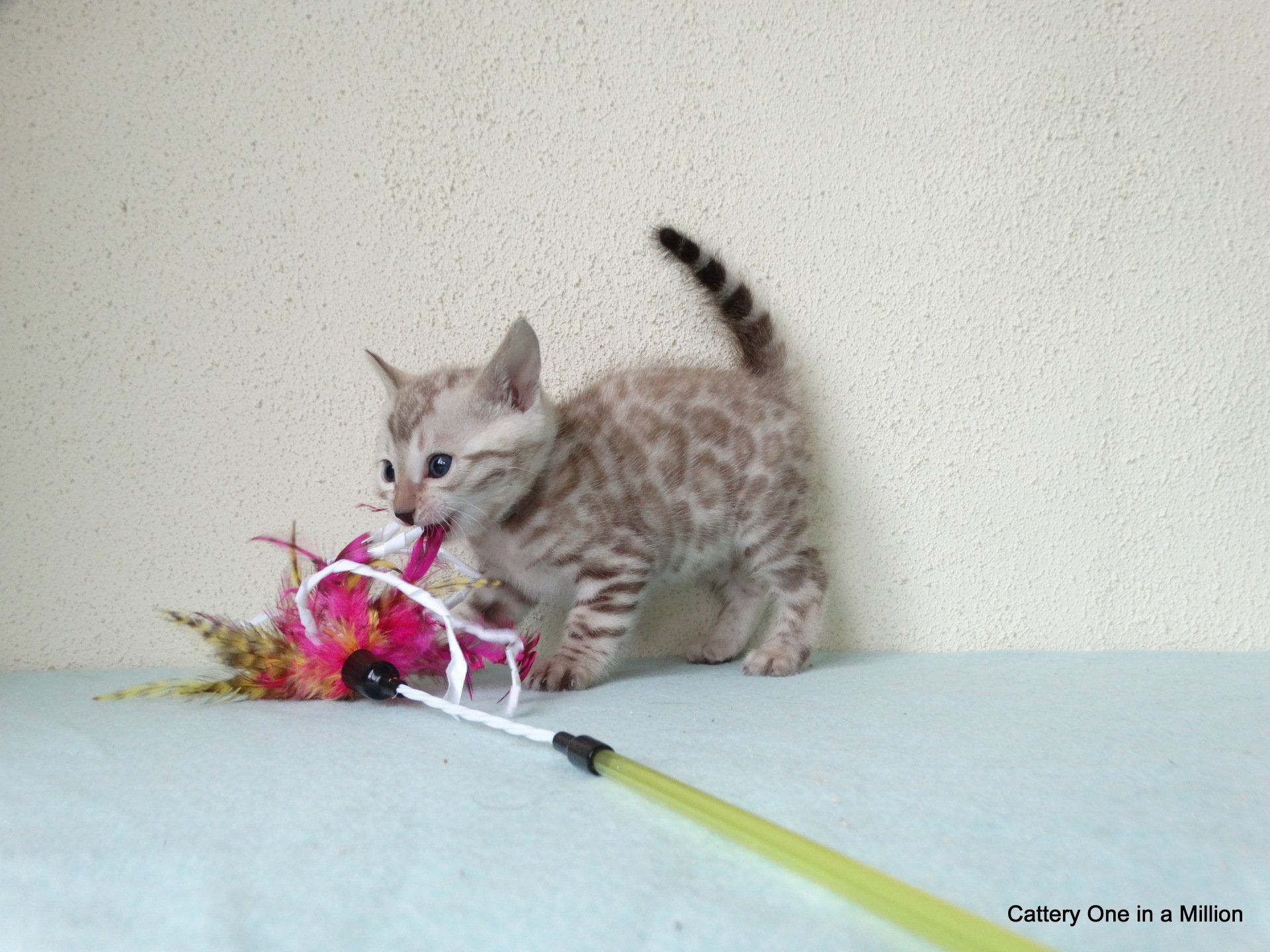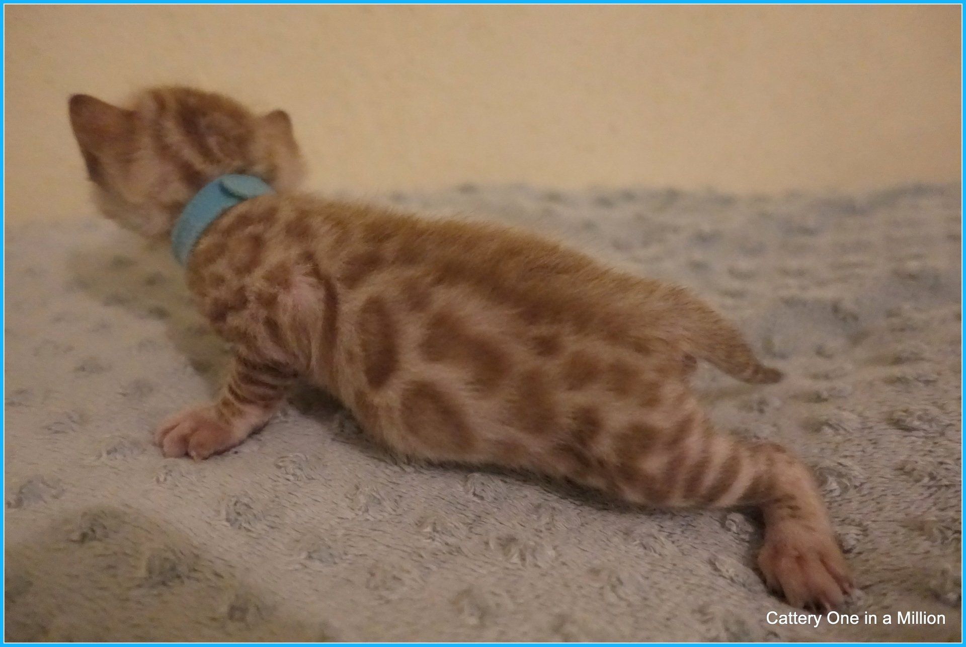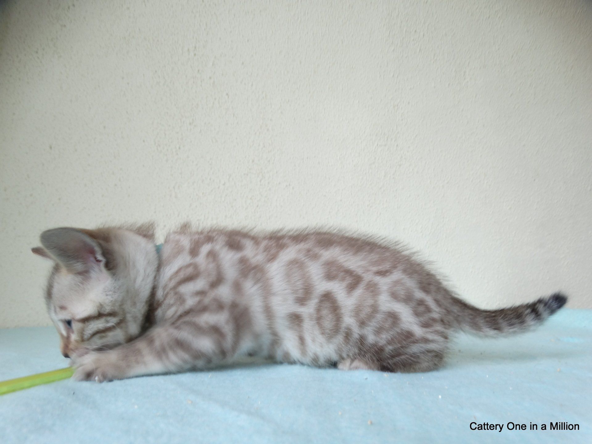 Ch. One in a Million Strawberry Cupcake aka Skye (seal lynx) & One in a Million Mr. Spots N Dots aka Maxx (seal sepia charcoal) became parents late on the evening of December 14, 2019 to 6 beautiful seal mink Bengals. 4 males and 2 females. Unfortunately we had to put the yellow kitten to sleep after 1 day. The kitten was found to have a cleft palate to such an extent that surgery was not possible at a later age. Unfortunately, letting her go was the only right option for her. Skye is doing well and is a really sweet mother. Interested? Send us a message for more information.