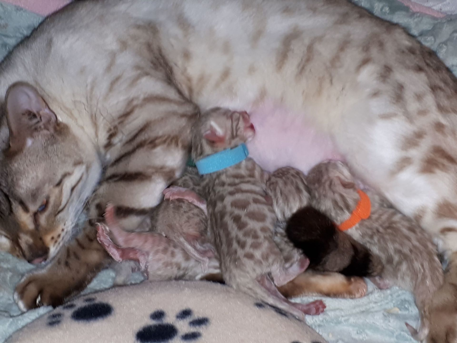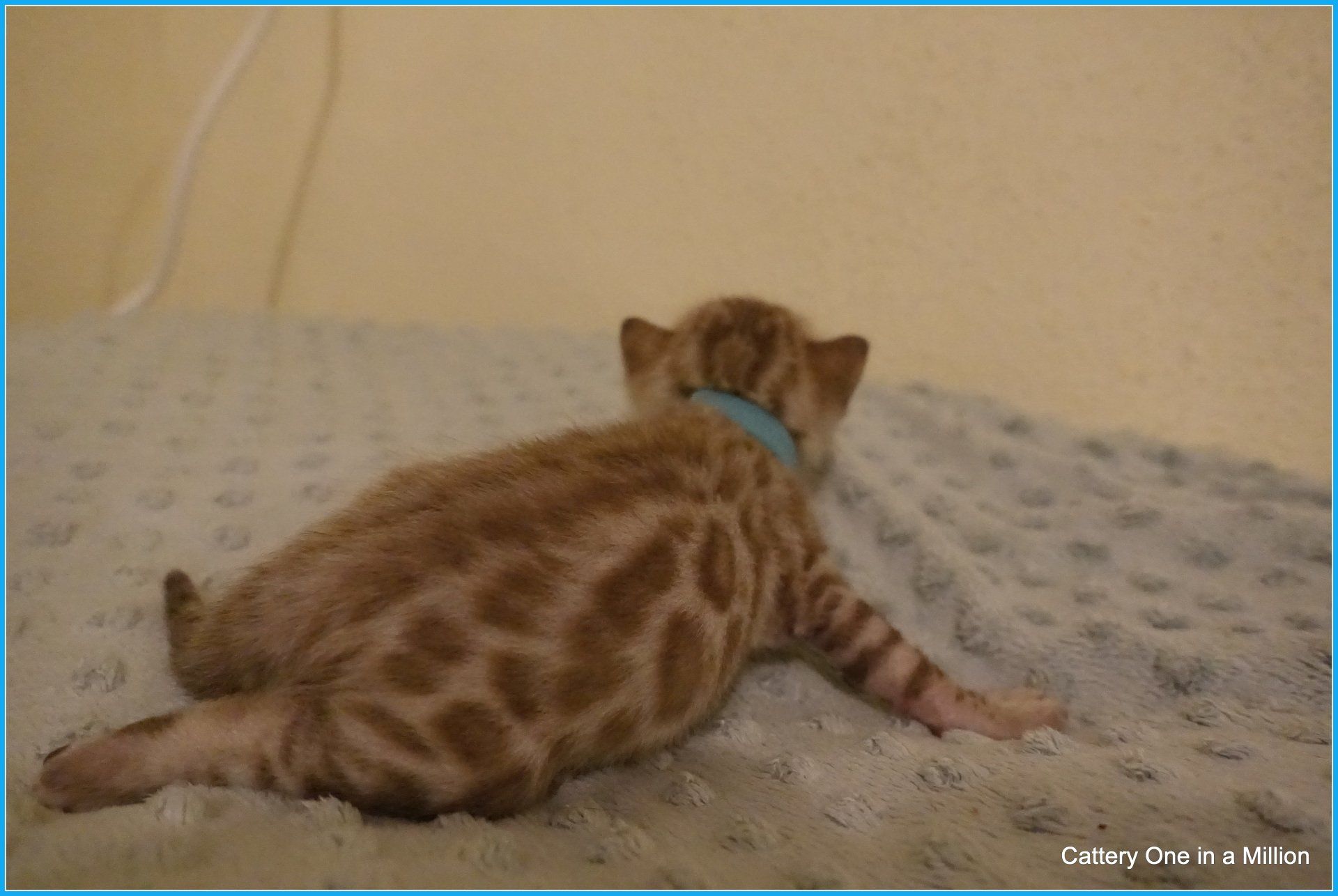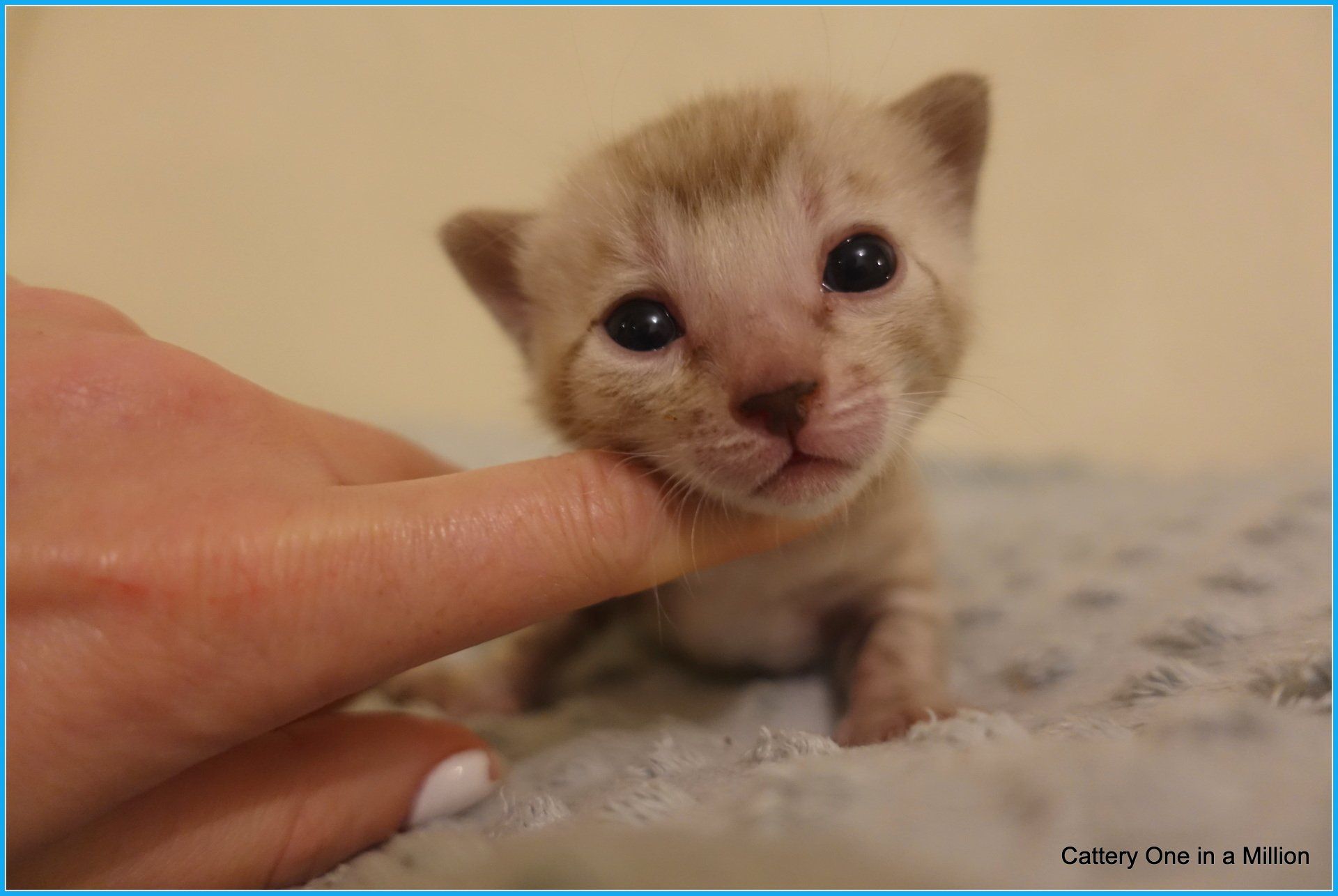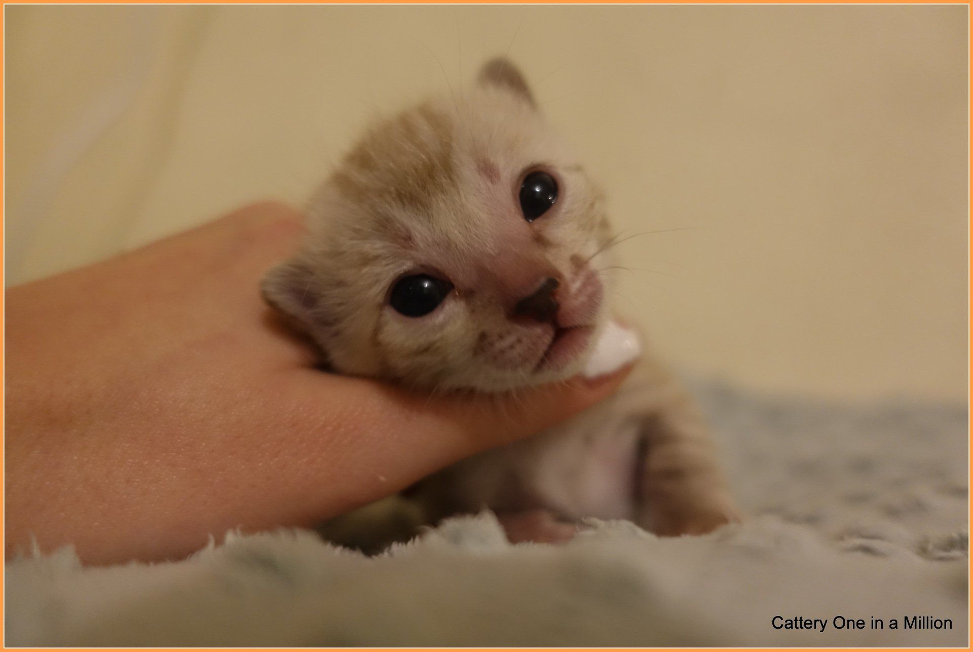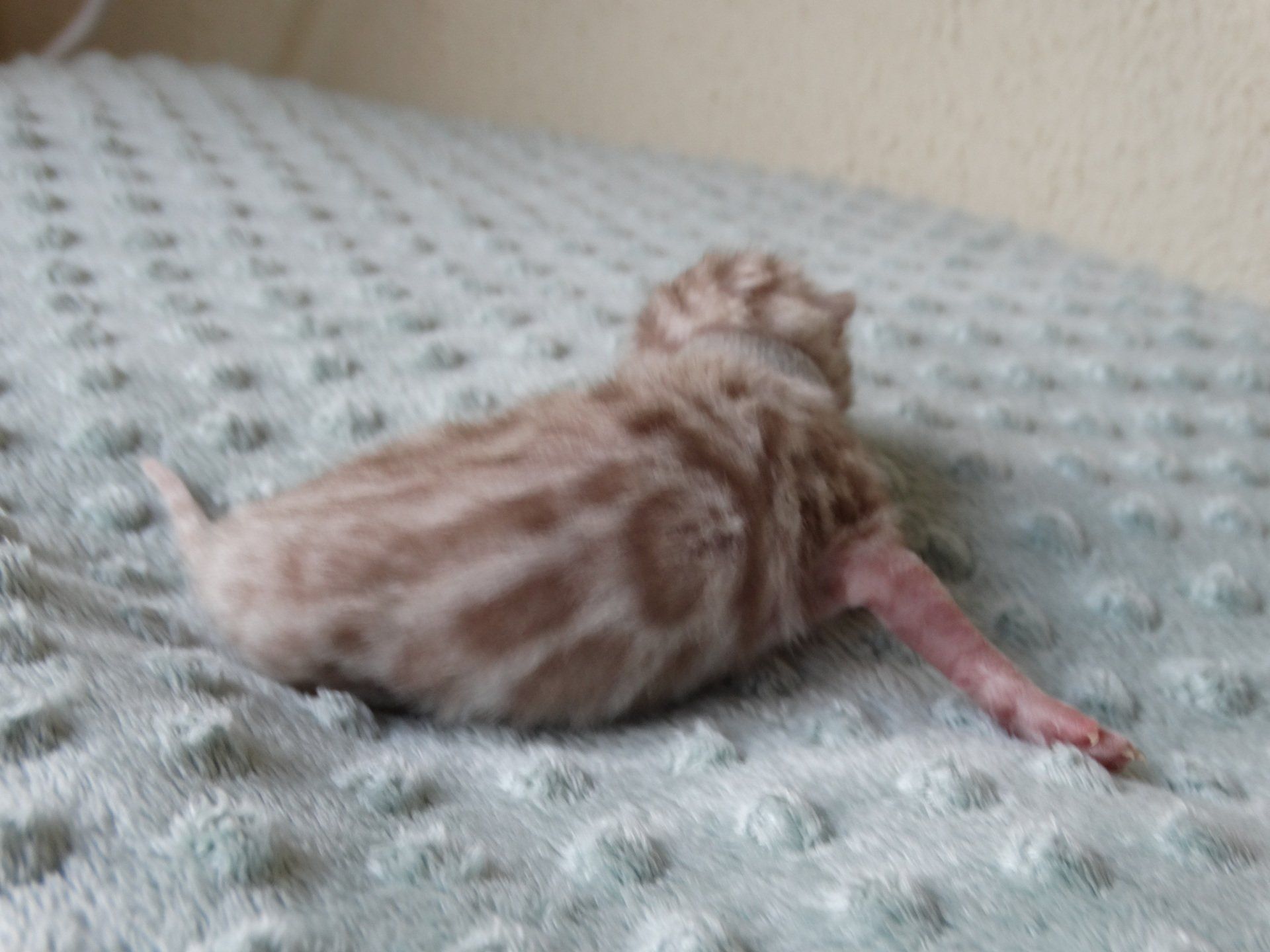 Ch. One in a Million Strawberry Cupcake aka Skye (seal lynx) & One in a Million Mr. Spots N Dots aka Maxx (seal sepia charcoal) became parents late on the evening of December 14, 2019 to 6 beautiful seal mink Bengals. 4 males and 2 females. Unfortunately we had to put the yellow kitten to sleep after 1 day. The kitten was found to have a cleft palate to such an extent that surgery was not possible at a later age. Unfortunately, letting her go was the only right option for her. Skye is doing well and is a really sweet mother. Interested? Send us a message for more information.