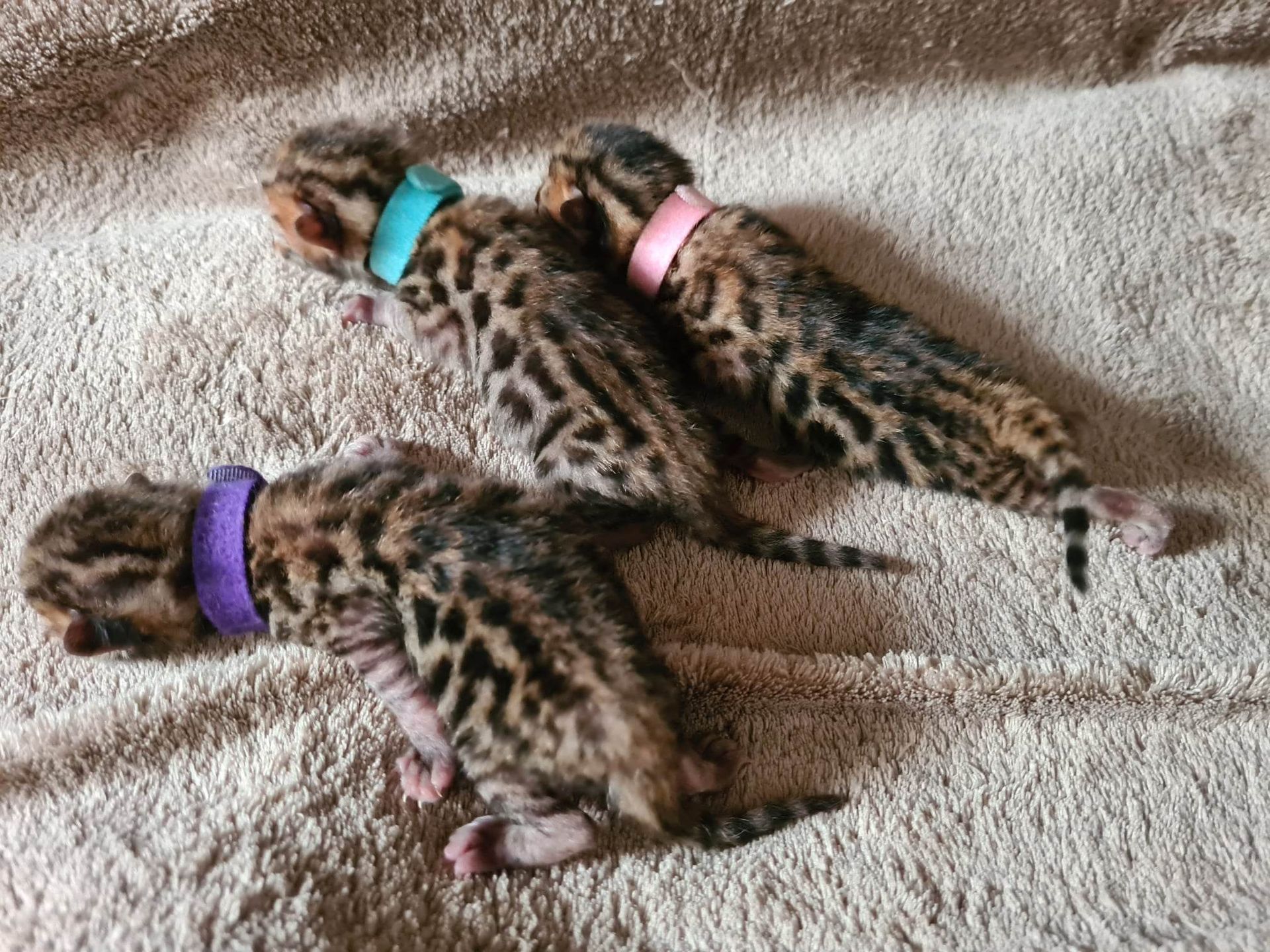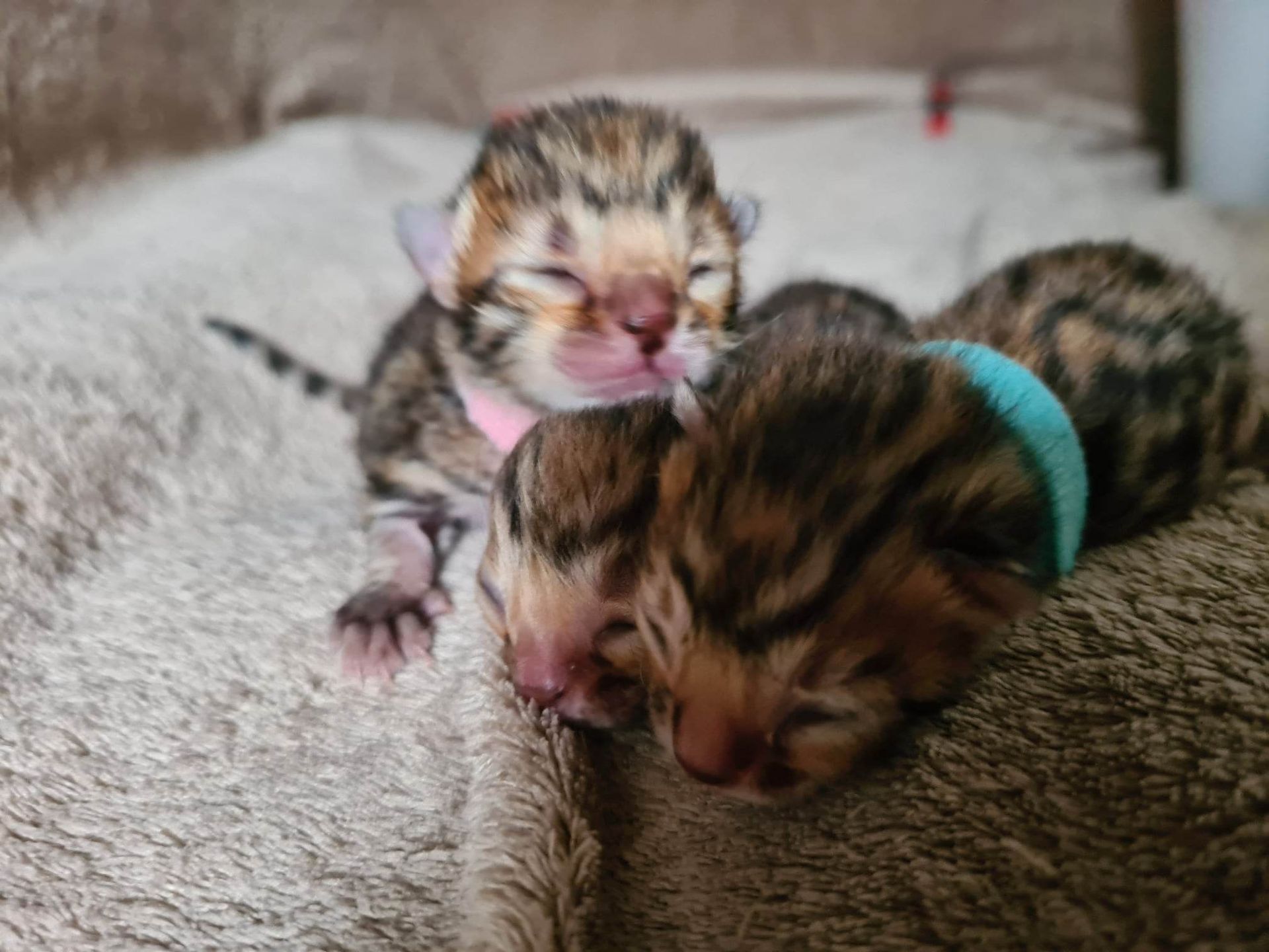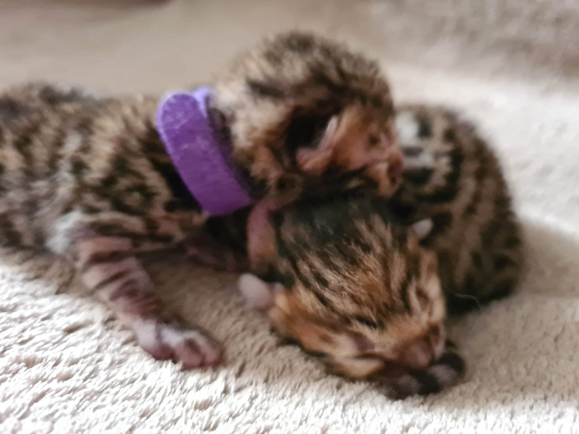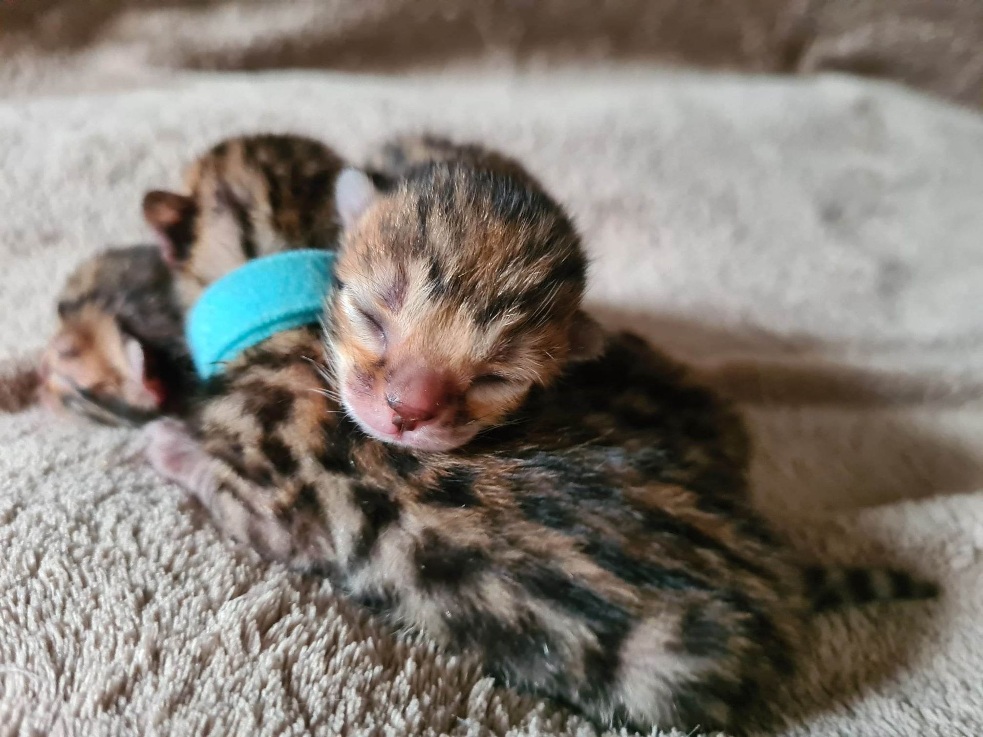 Mama en de 3 overige kittens doen het super goed. Het zijn 2 spotted/rozetted katertjes en een poesje.
