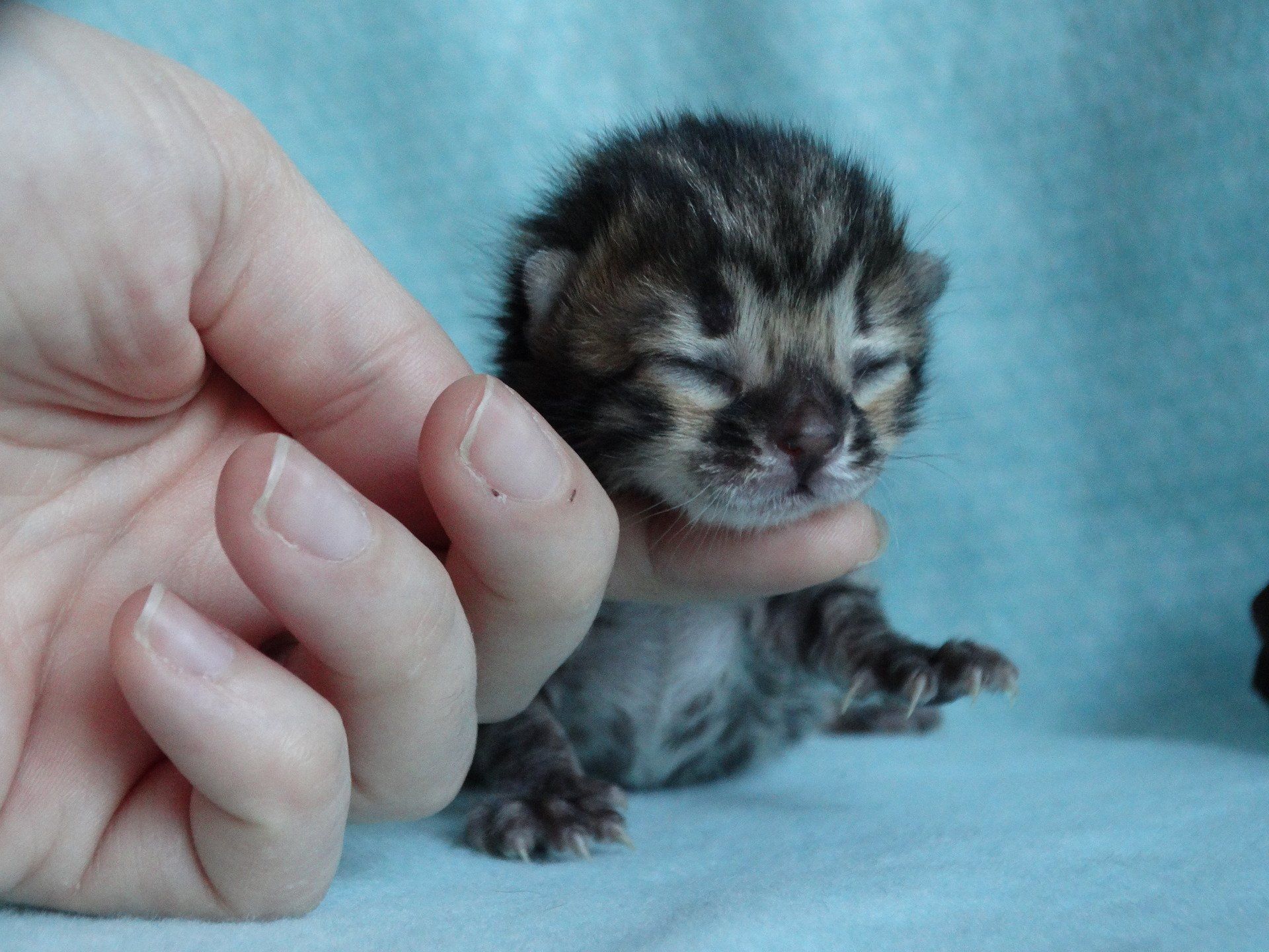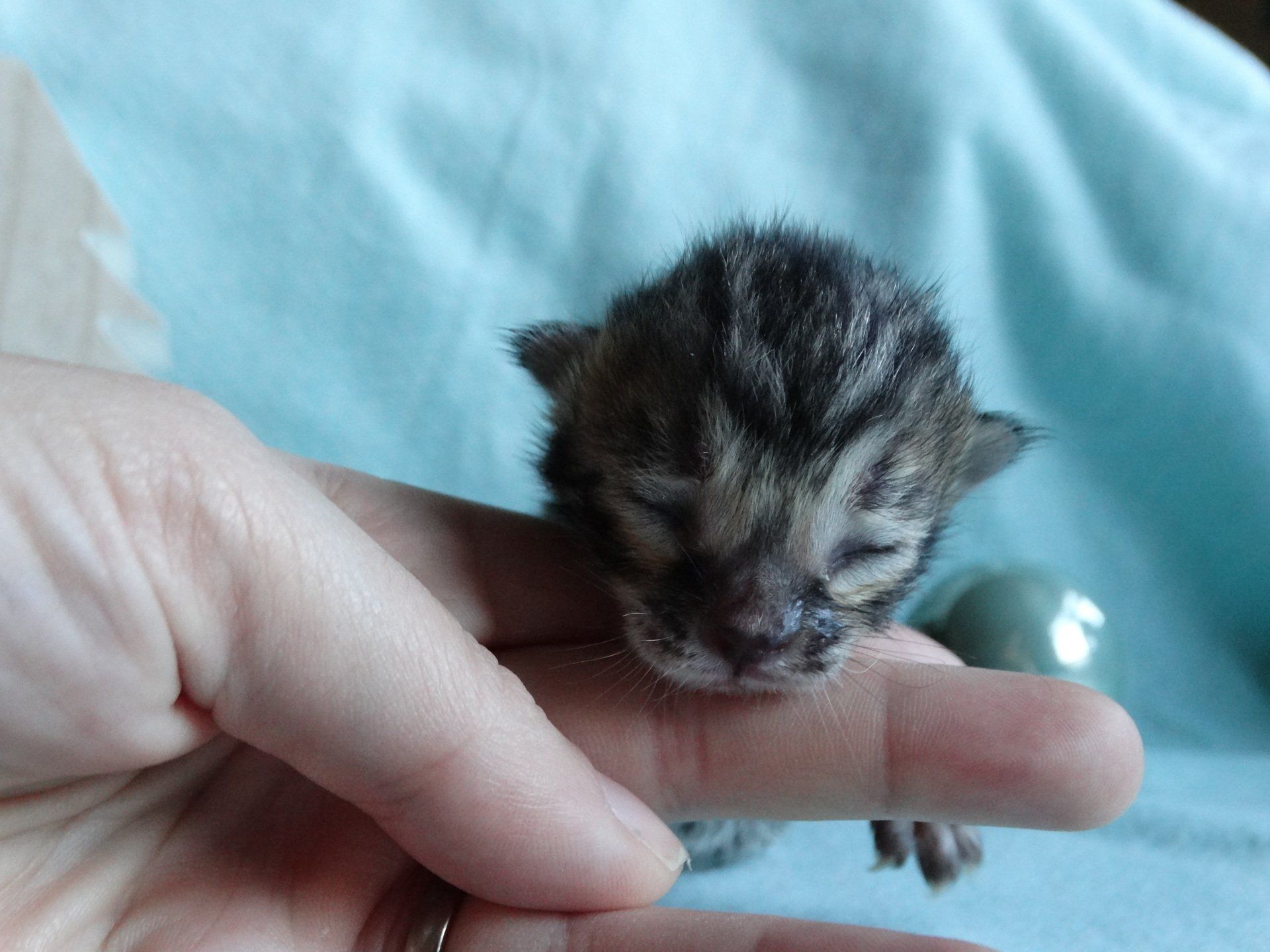 Na een aantal dagen echo's om te kijken hoe het met de kittens ging die Whisper verwachtte hadden we gezien dat er een overleden in haar buik zat en 2 (grote) levende. Net als vorig jaar werd op 64 dagen dracht besloten een keizersnede uit te voeren. Tot onze verrassing hebben we 3 levende kittens want er zat er eentje goed verstopt.